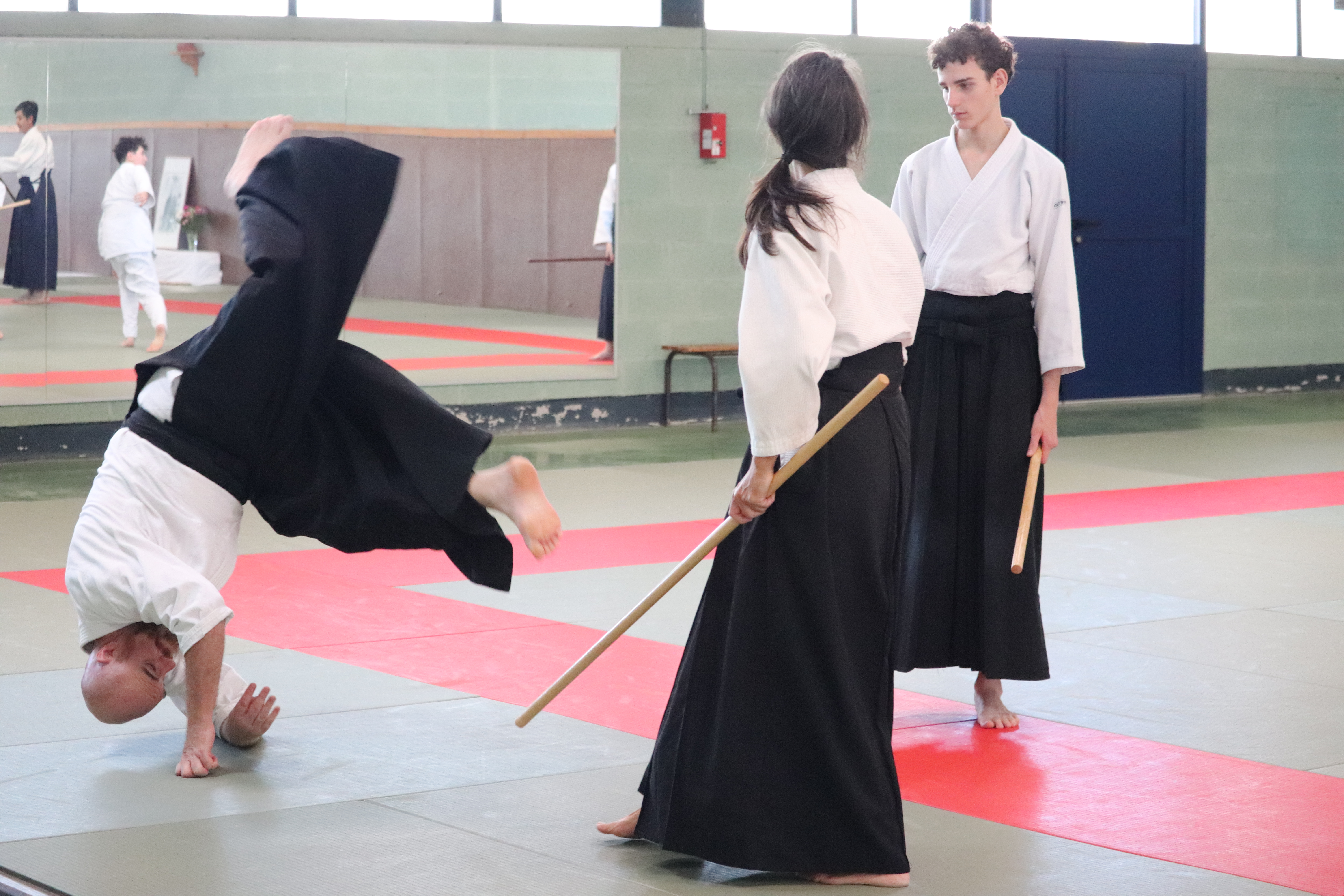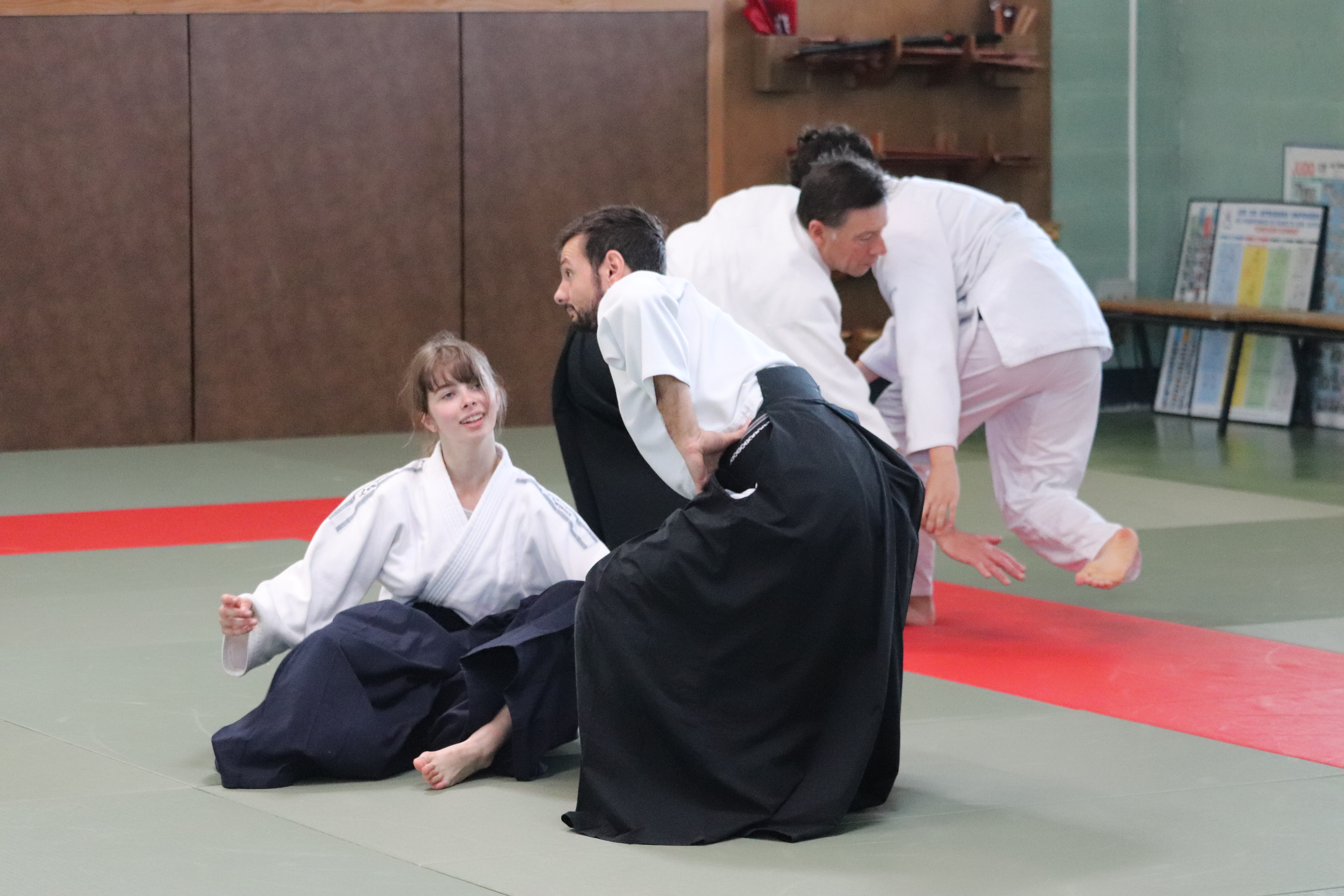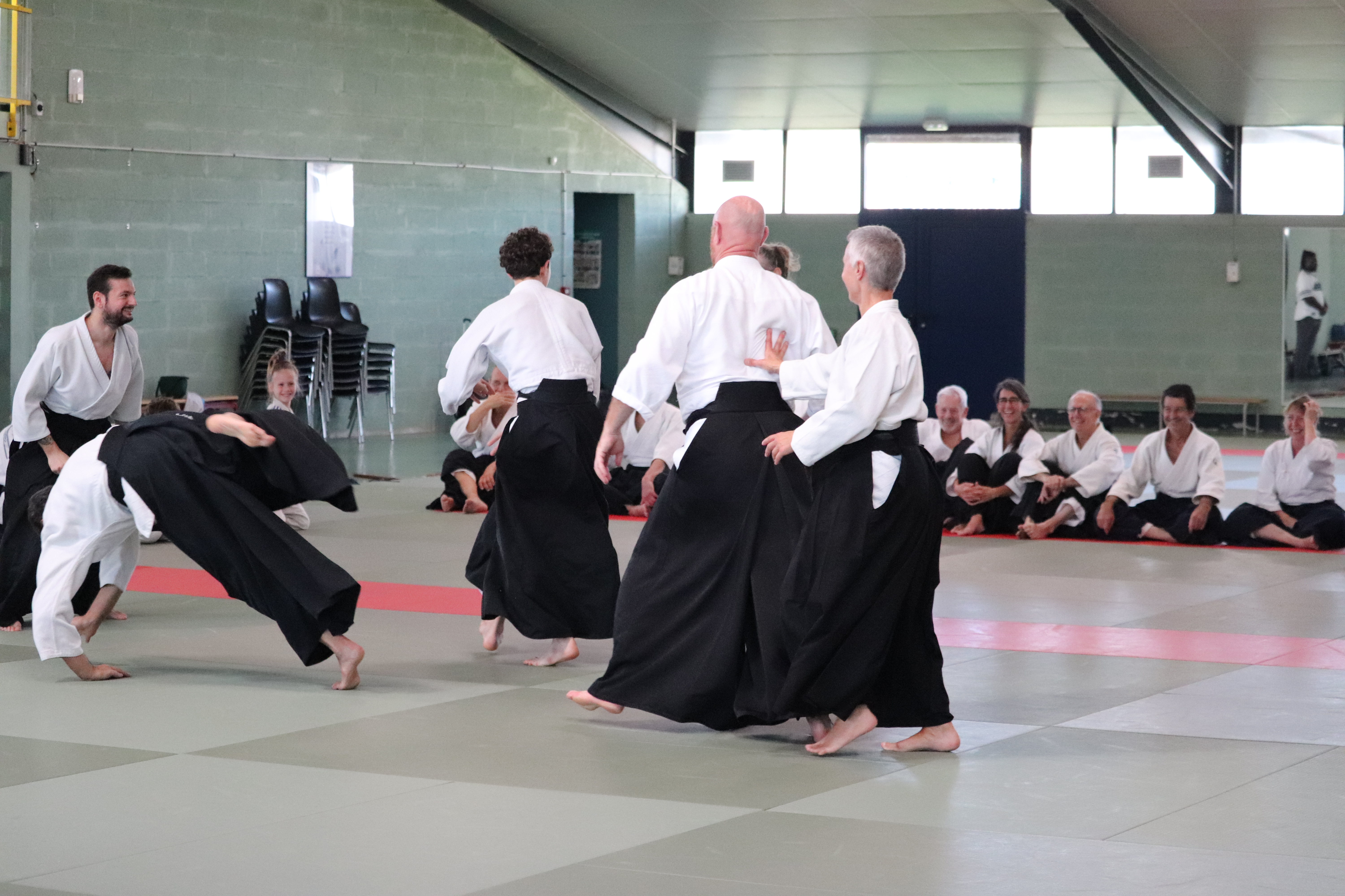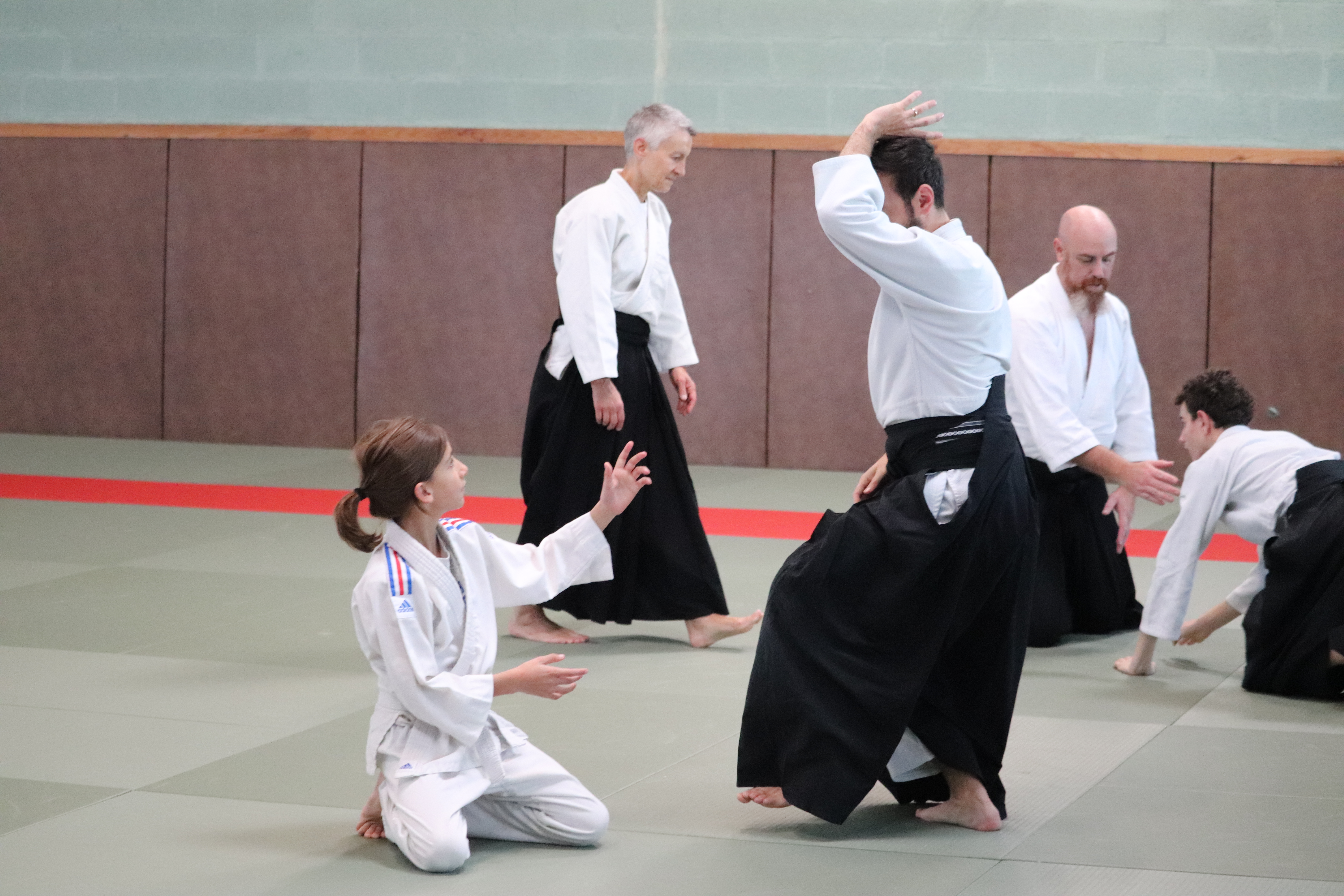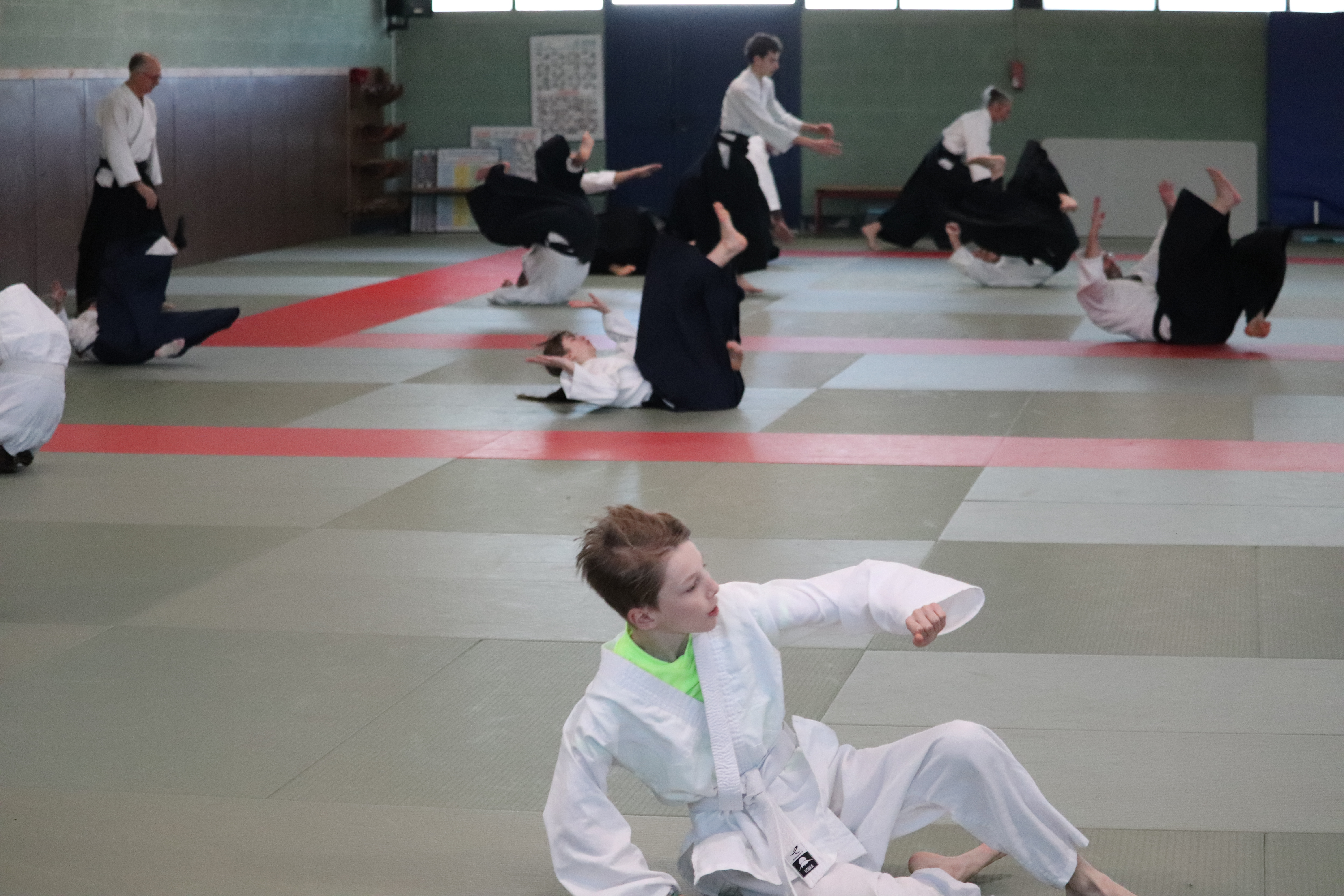 • Préparation aux ukémis ; ukémis avant dans toutes les directions ; ukémis arrières avec le bras qui se pose sur le tatami.