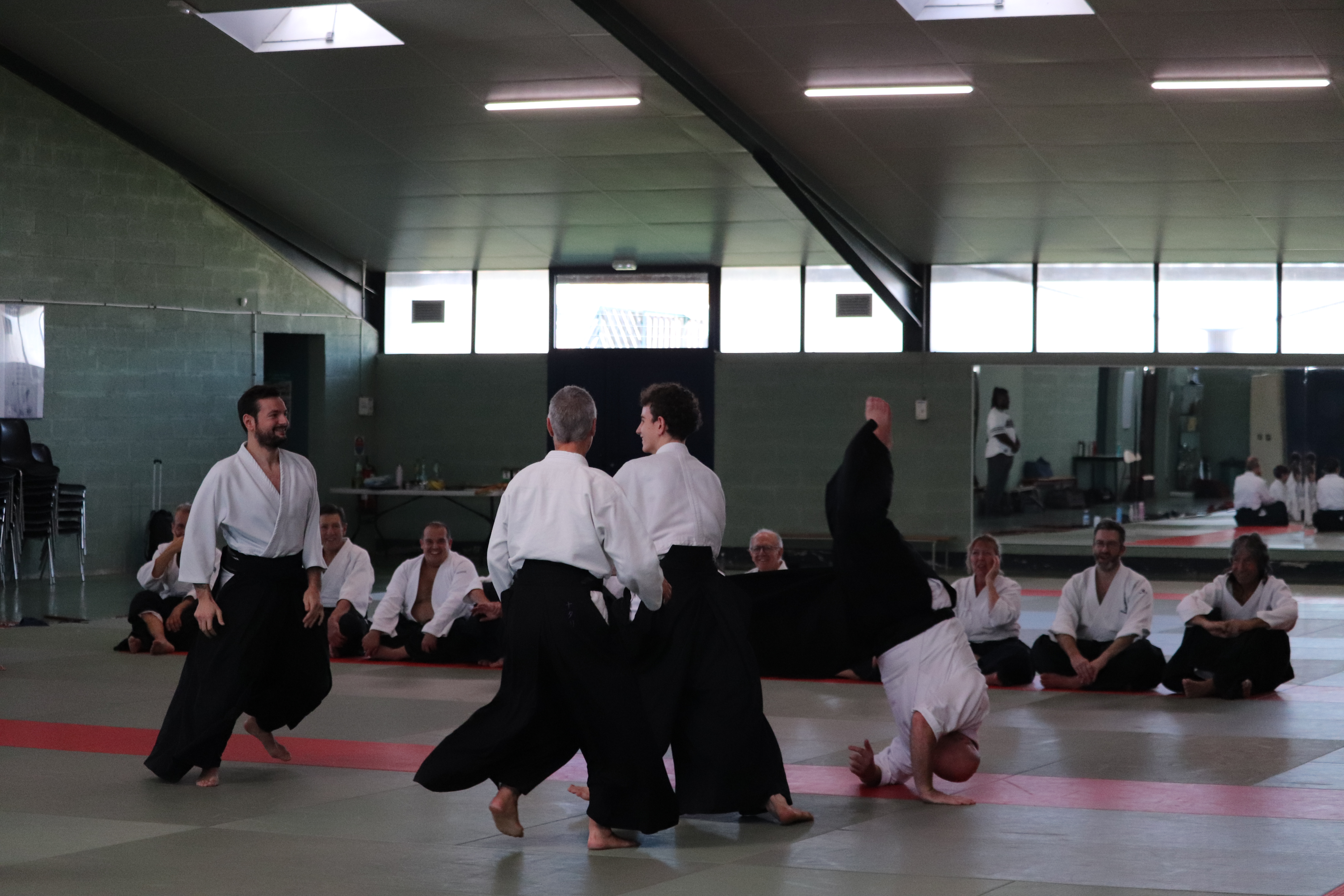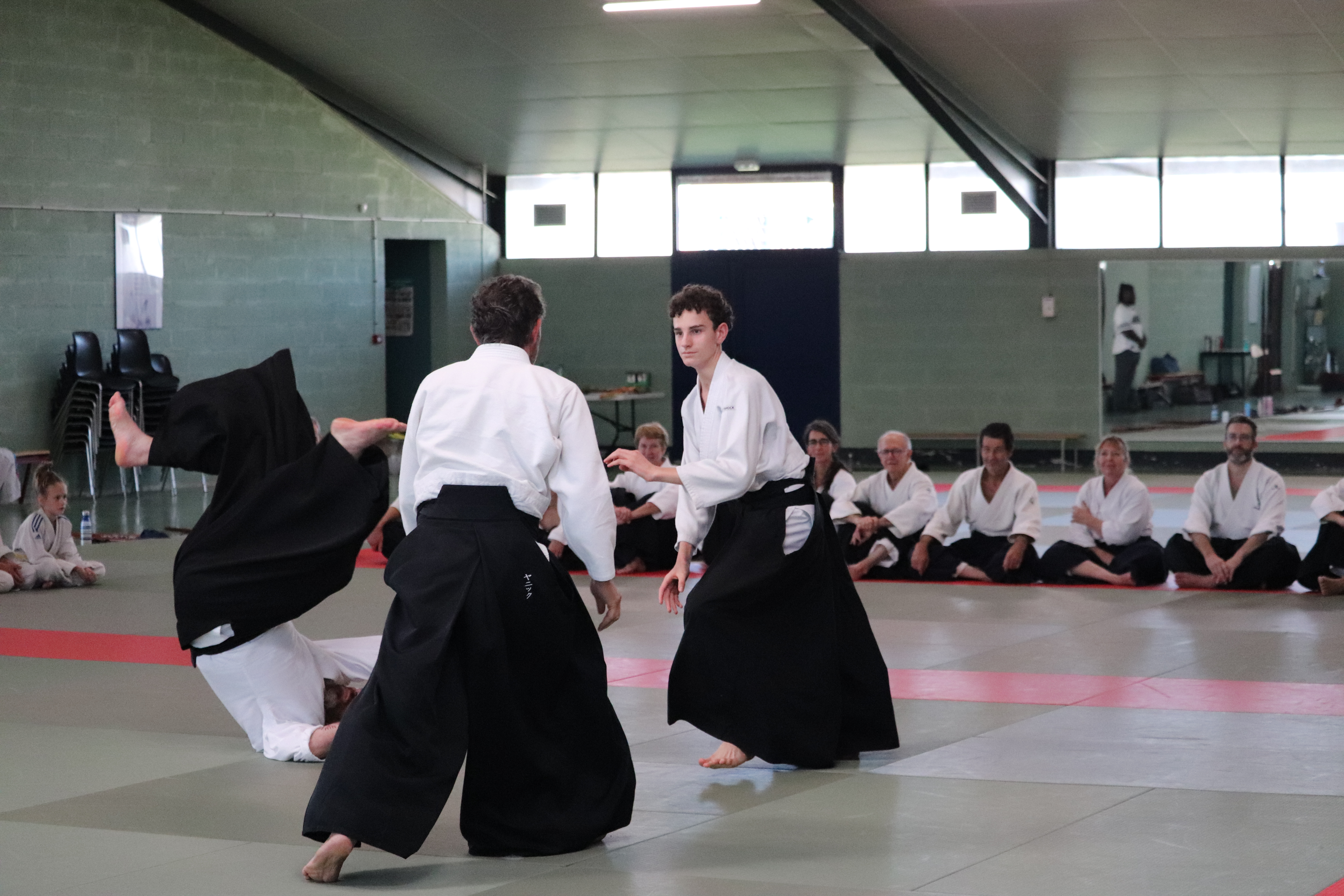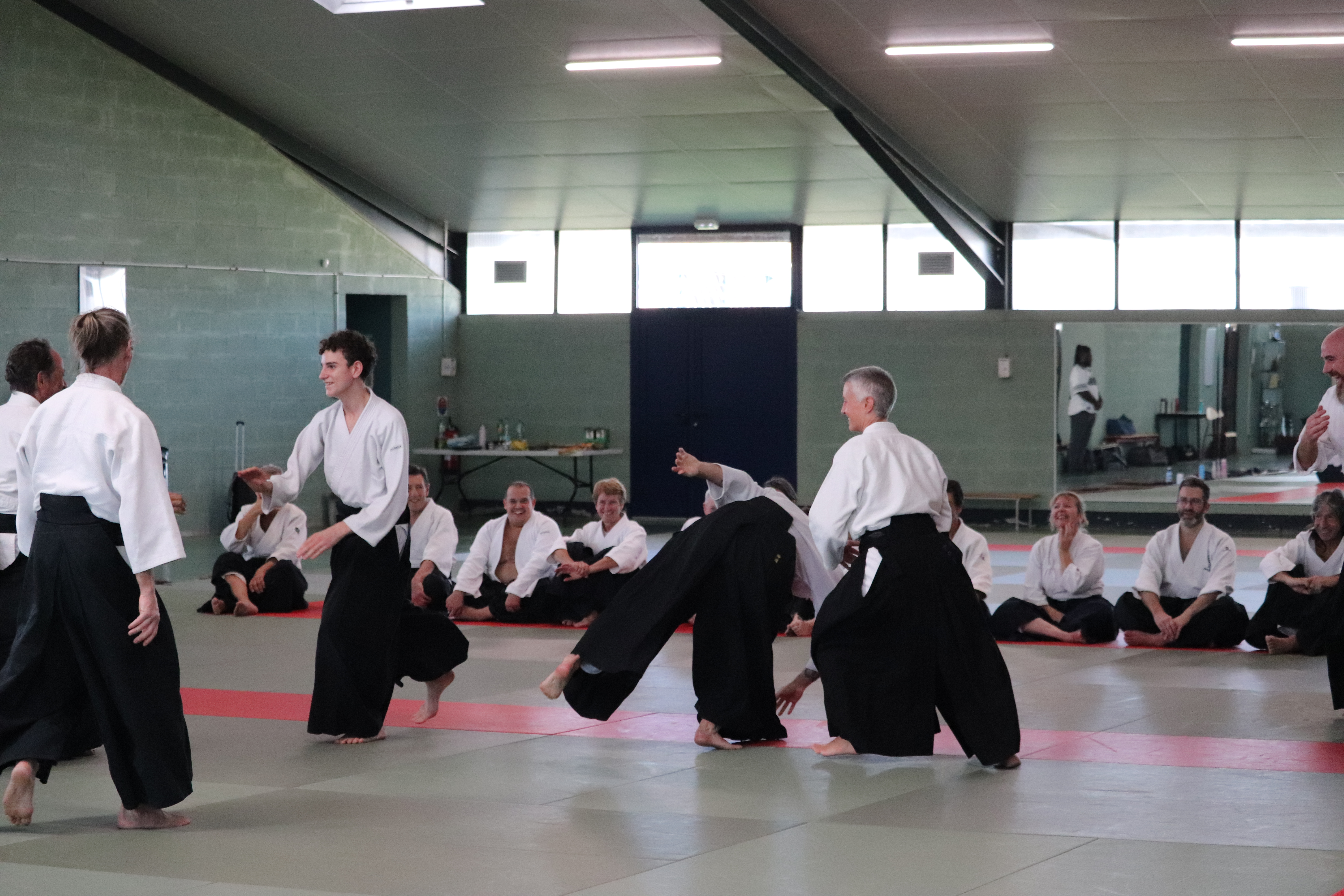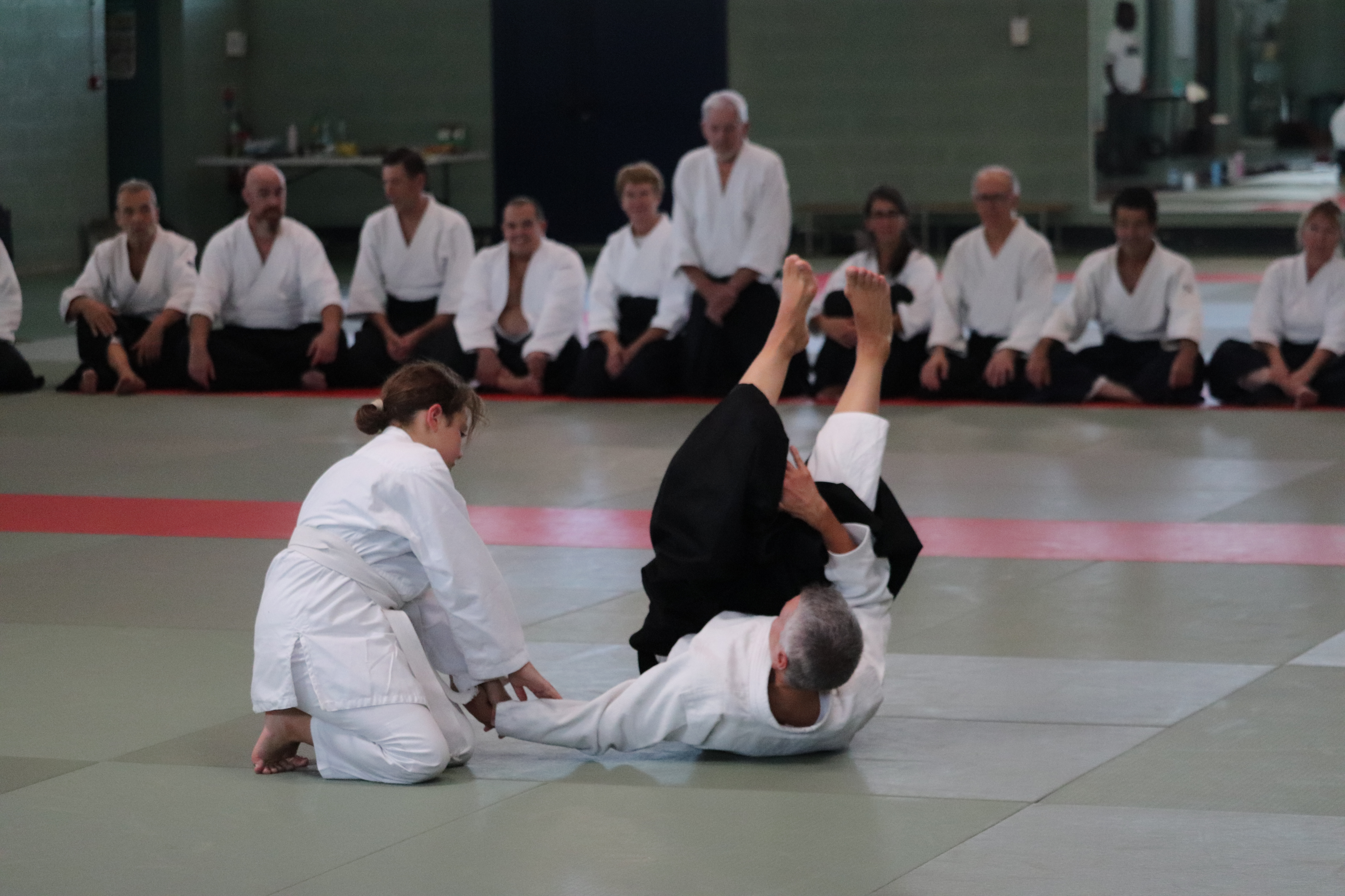 • Préparation aux ukémis ; ukémis avant dans toutes les directions ; ukémis arrières avec le bras qui se pose sur le tatami.