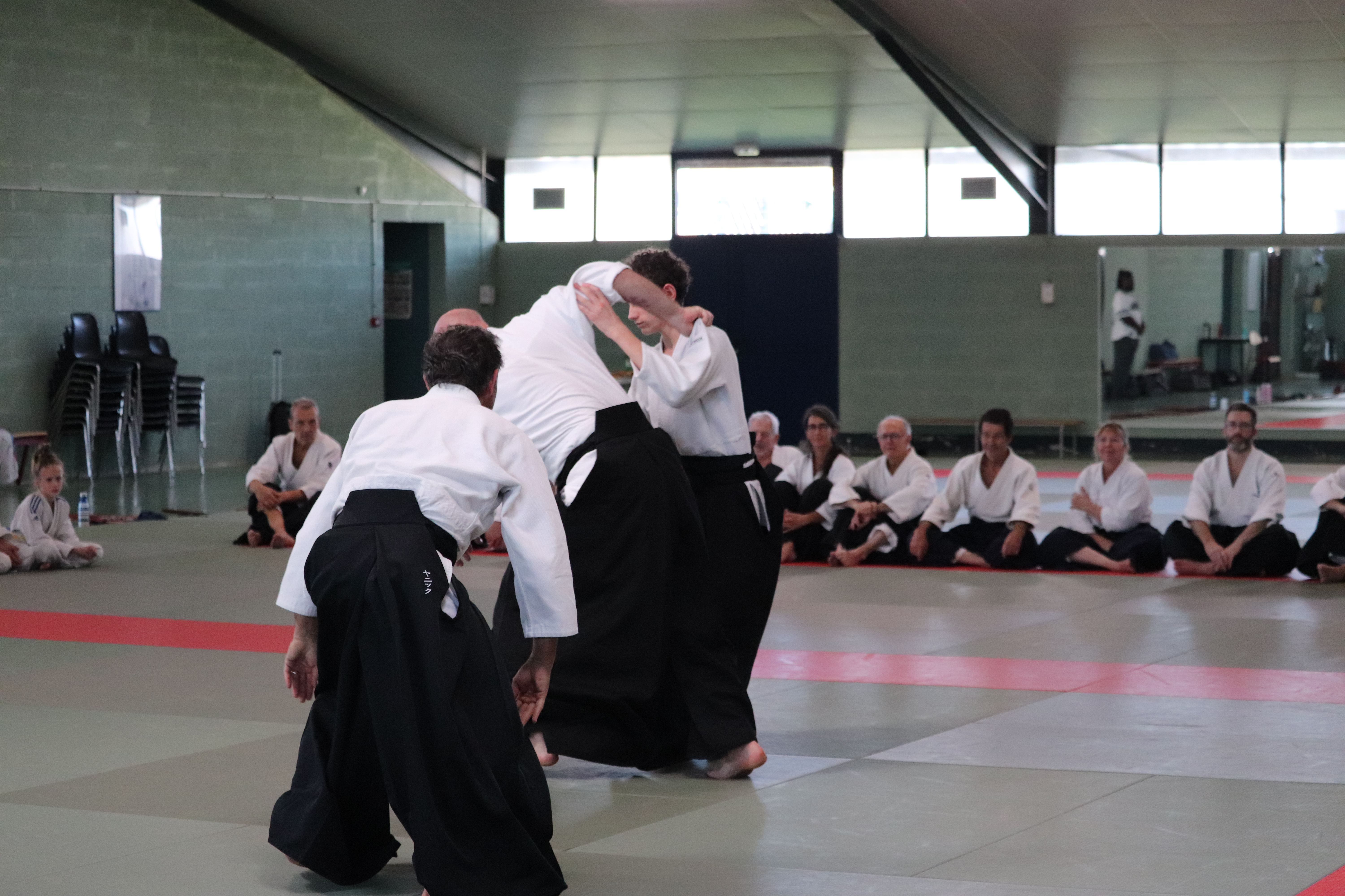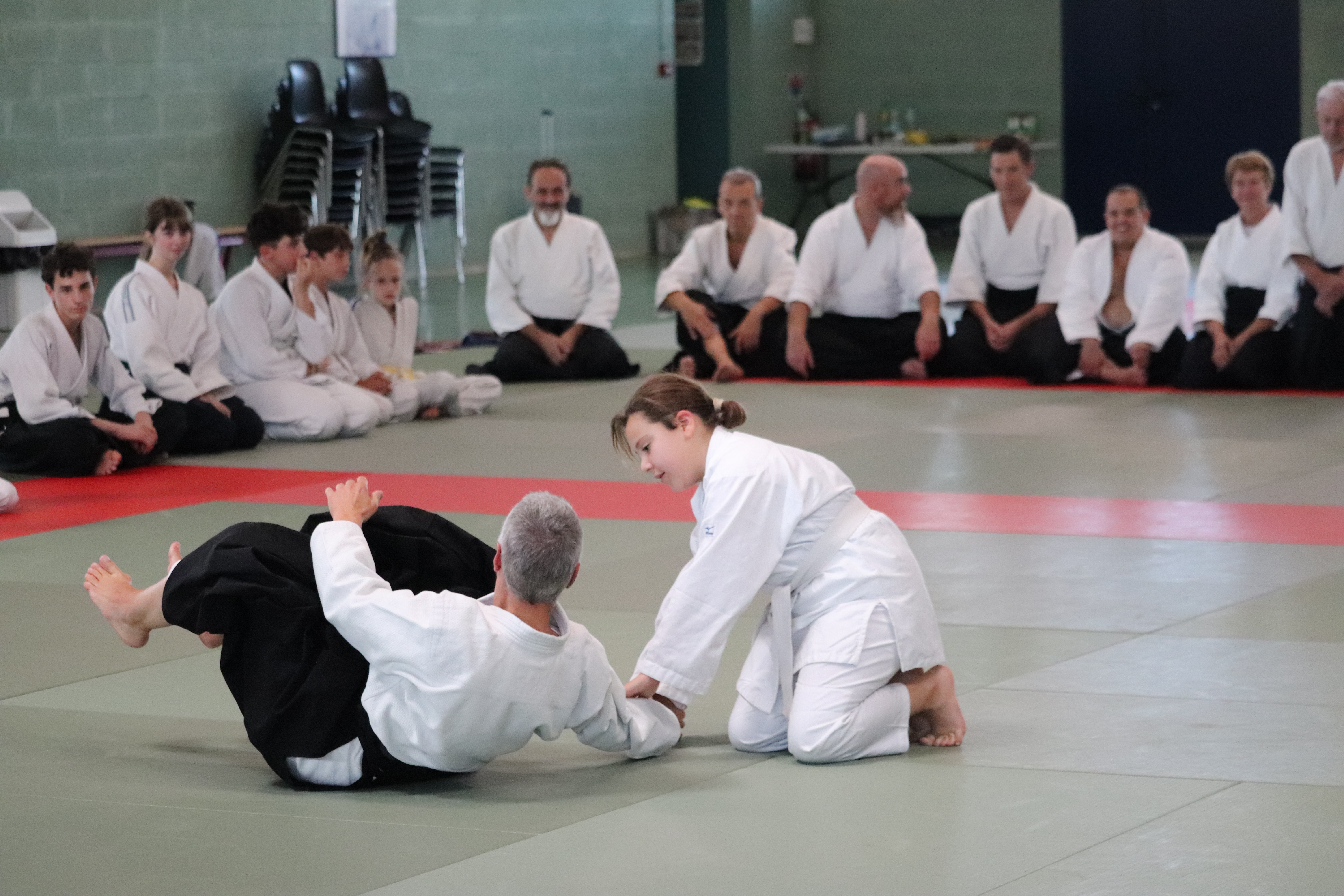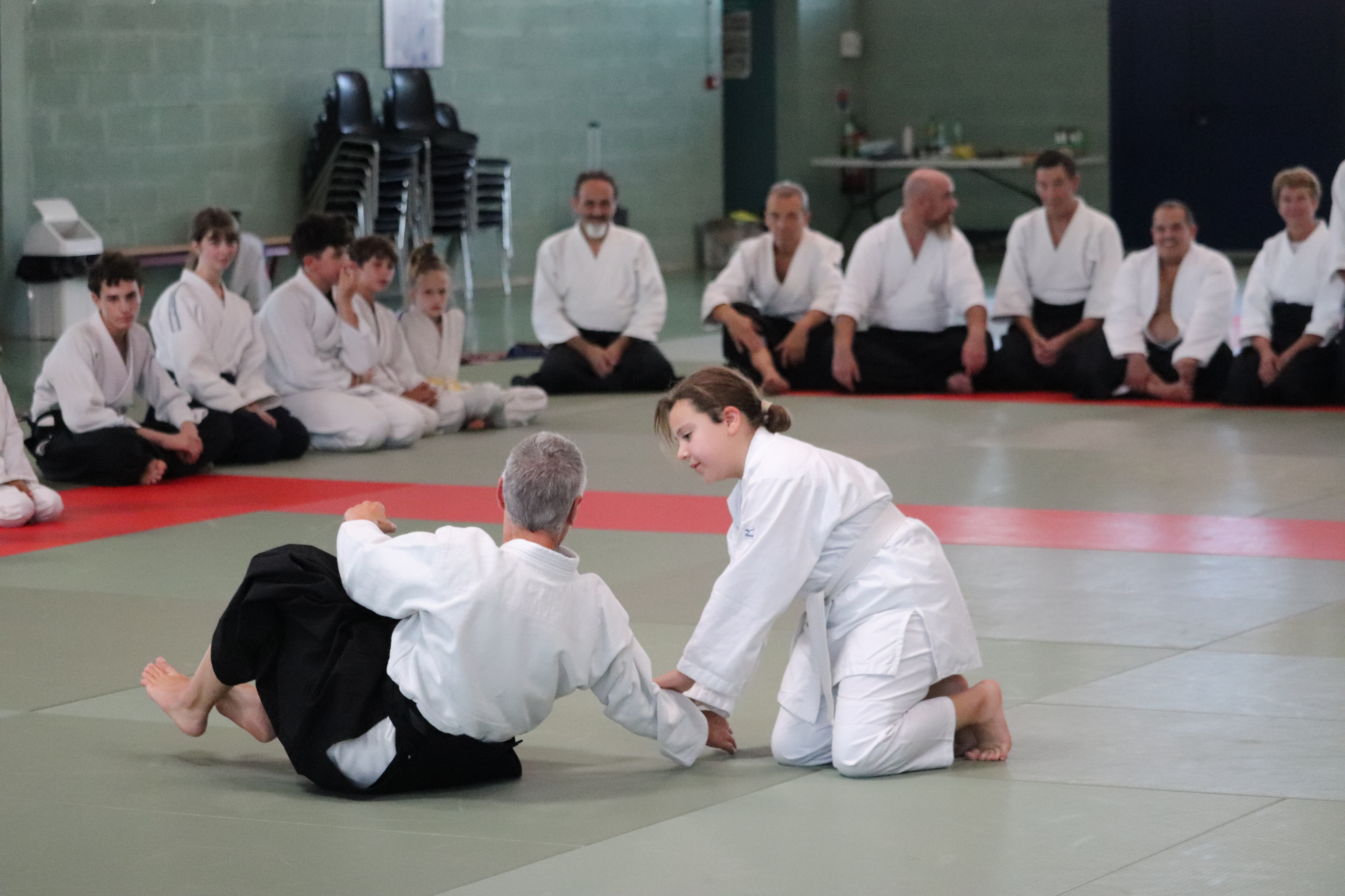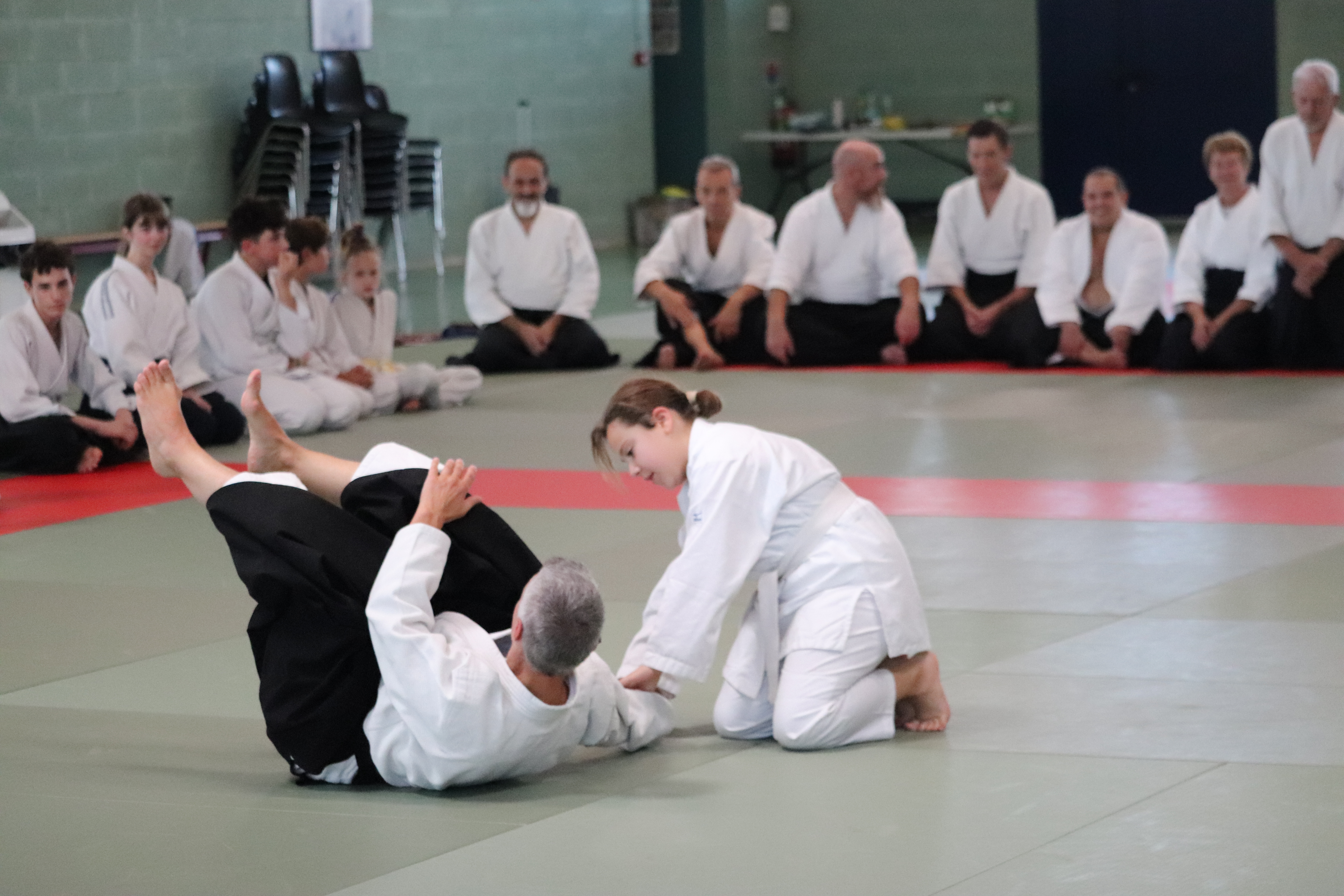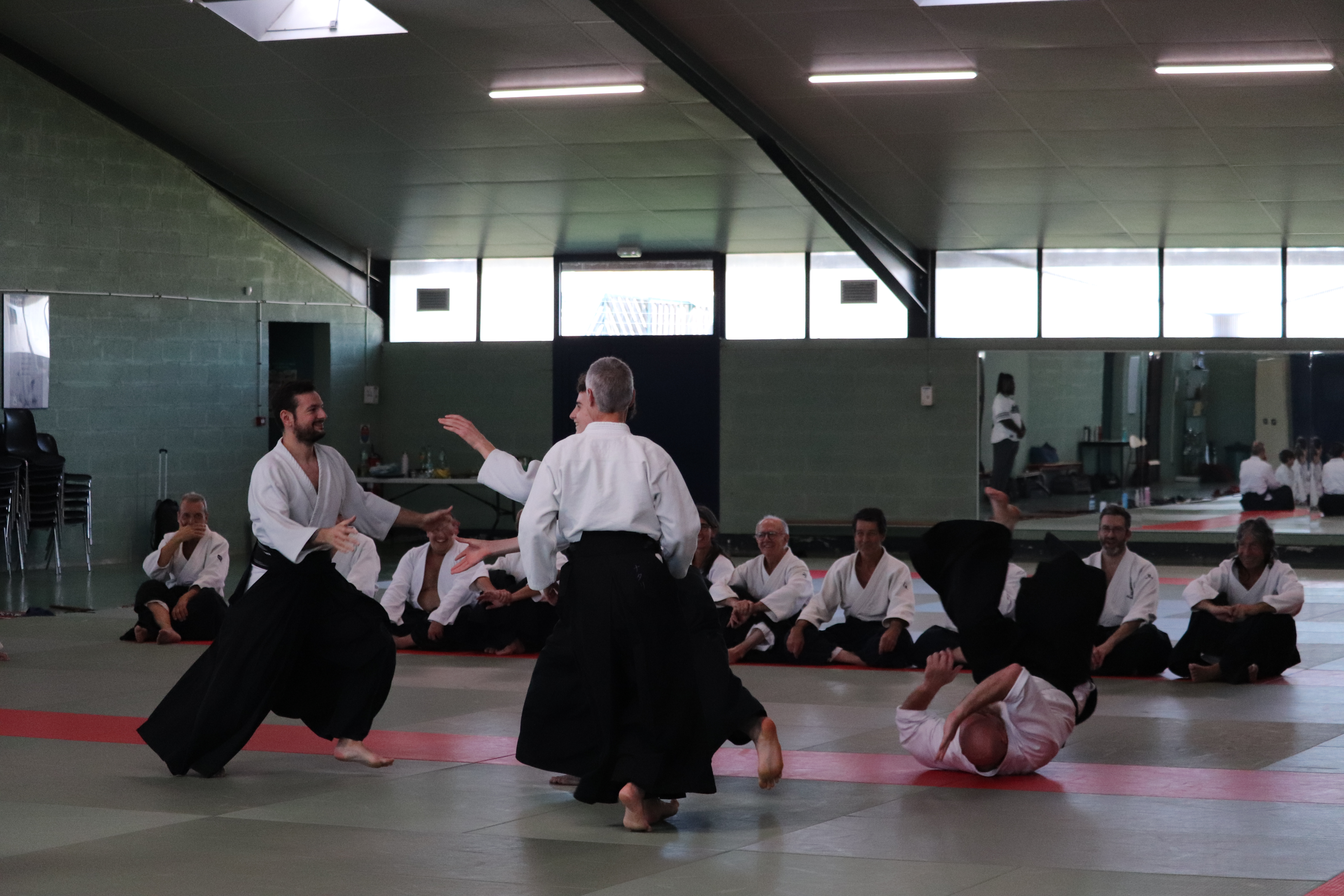• Préparation aux ukémis ; ukémis avant dans toutes les directions ; ukémis arrières avec le bras qui se pose sur le tatami.
