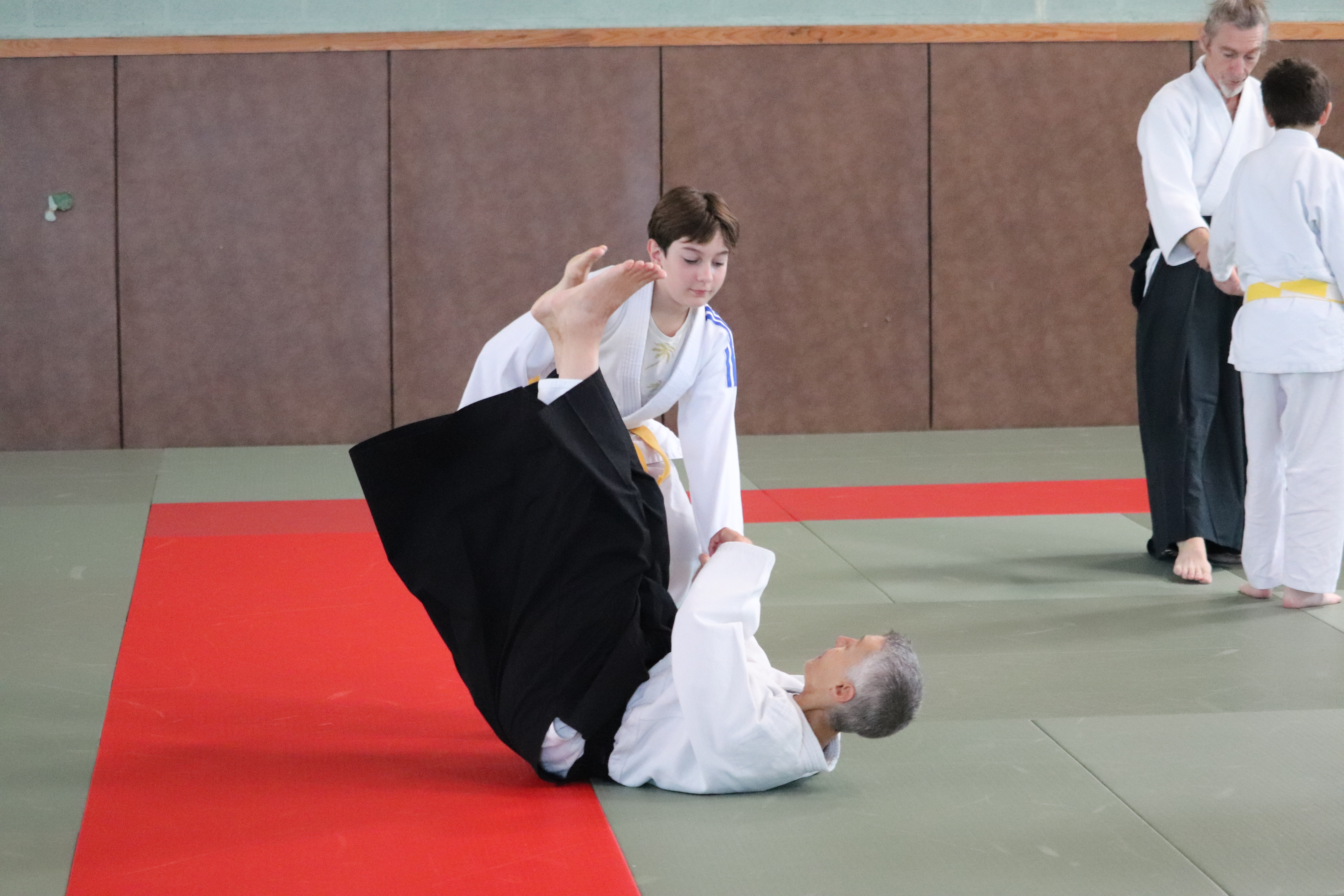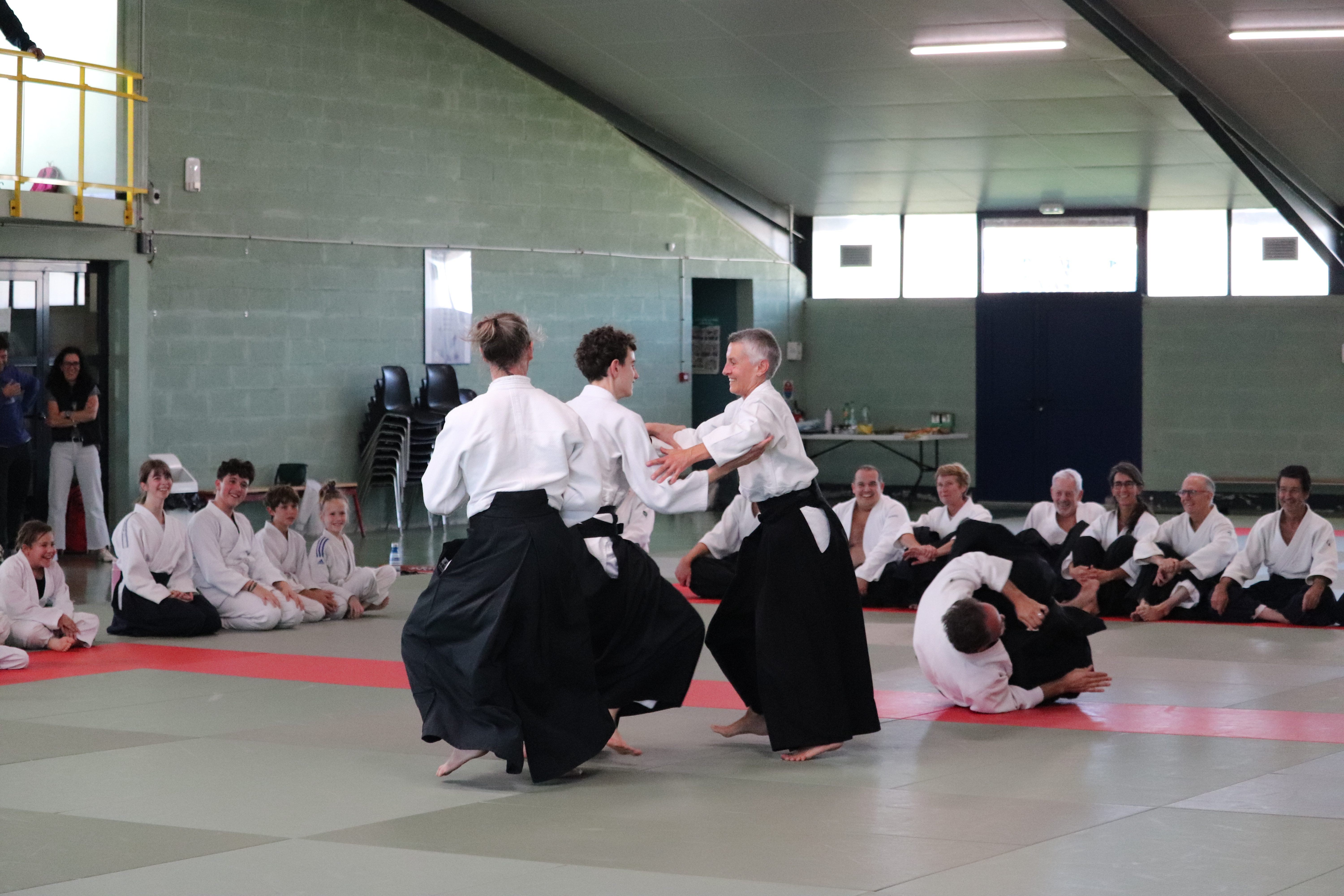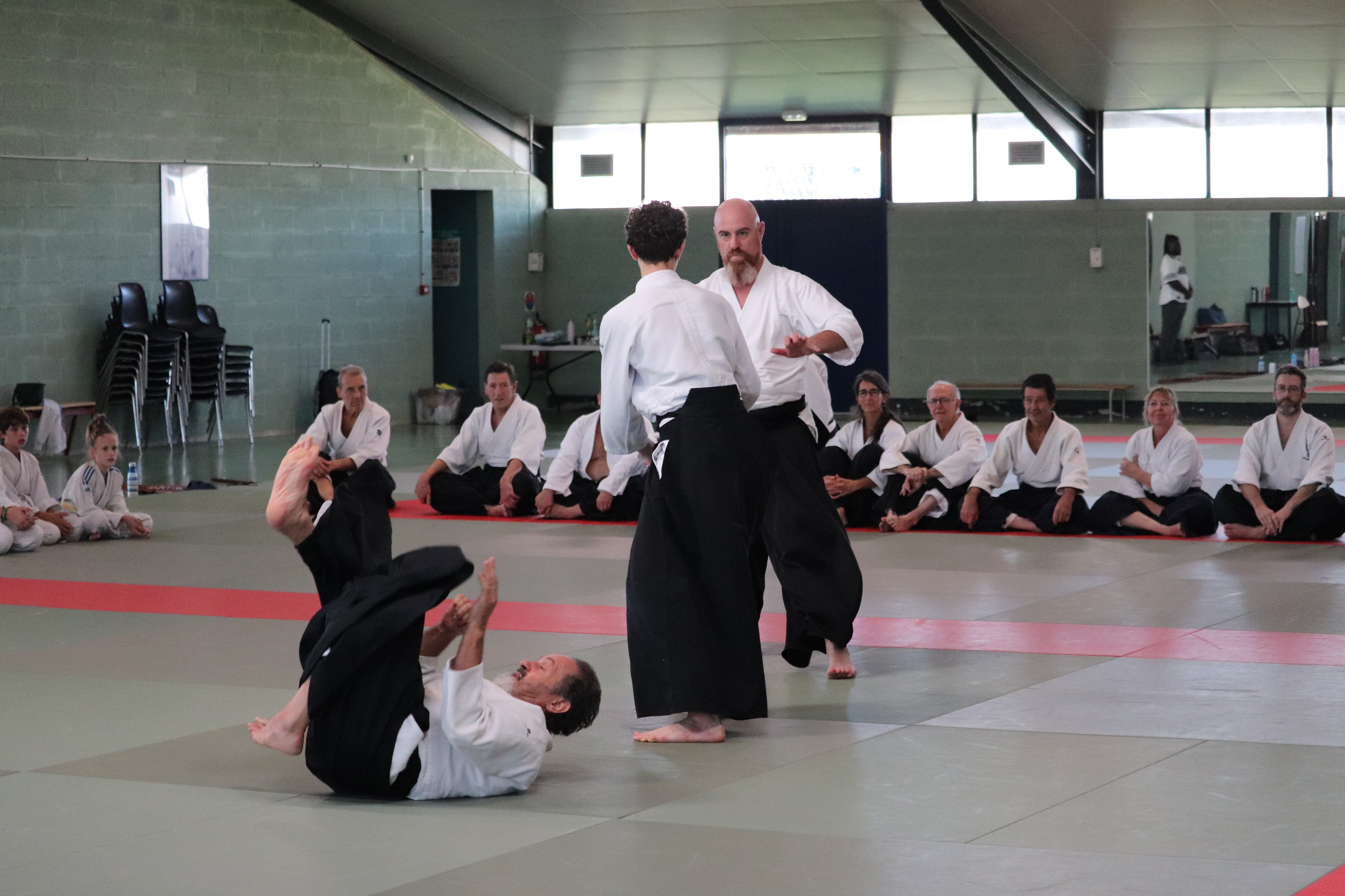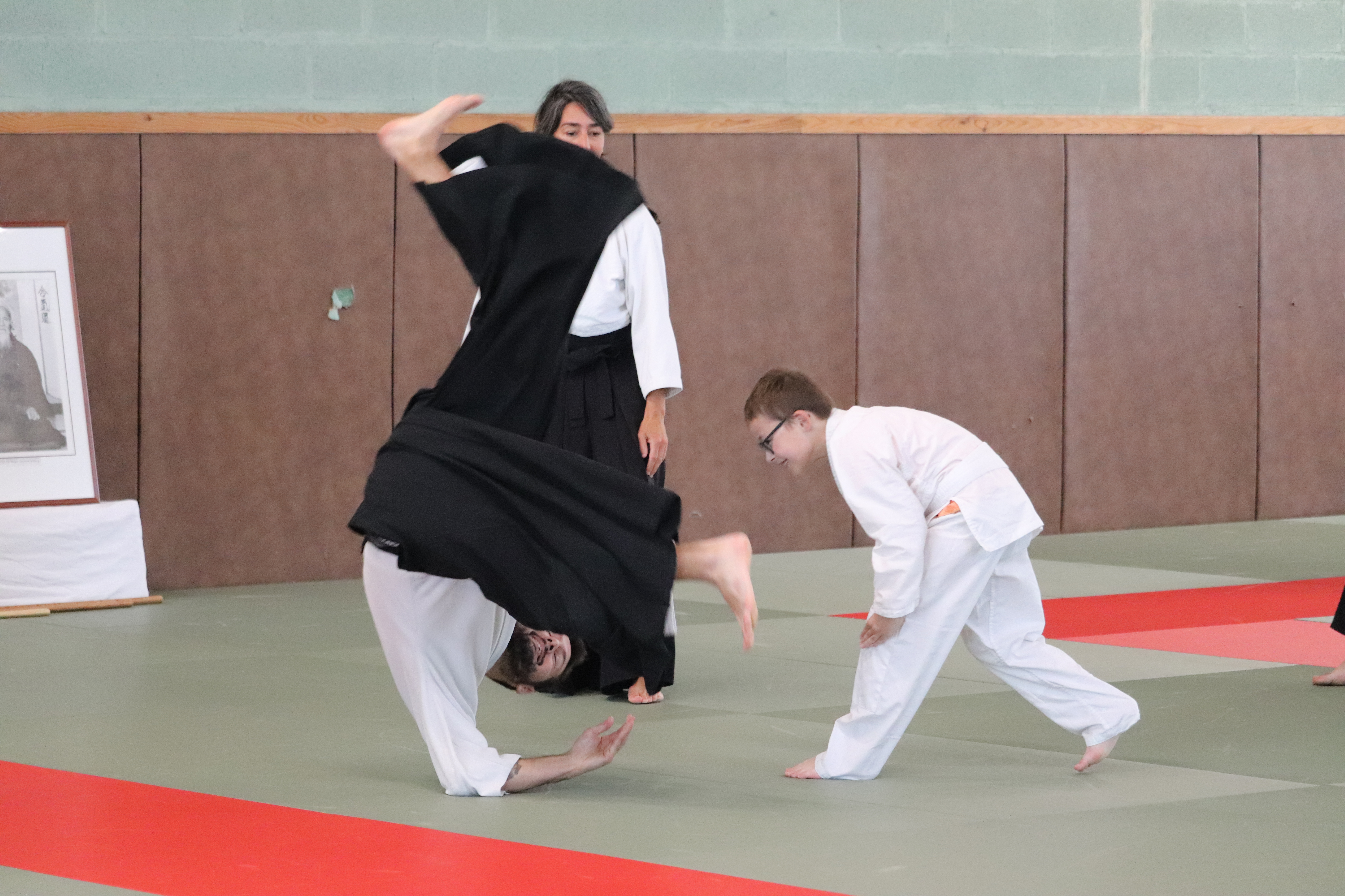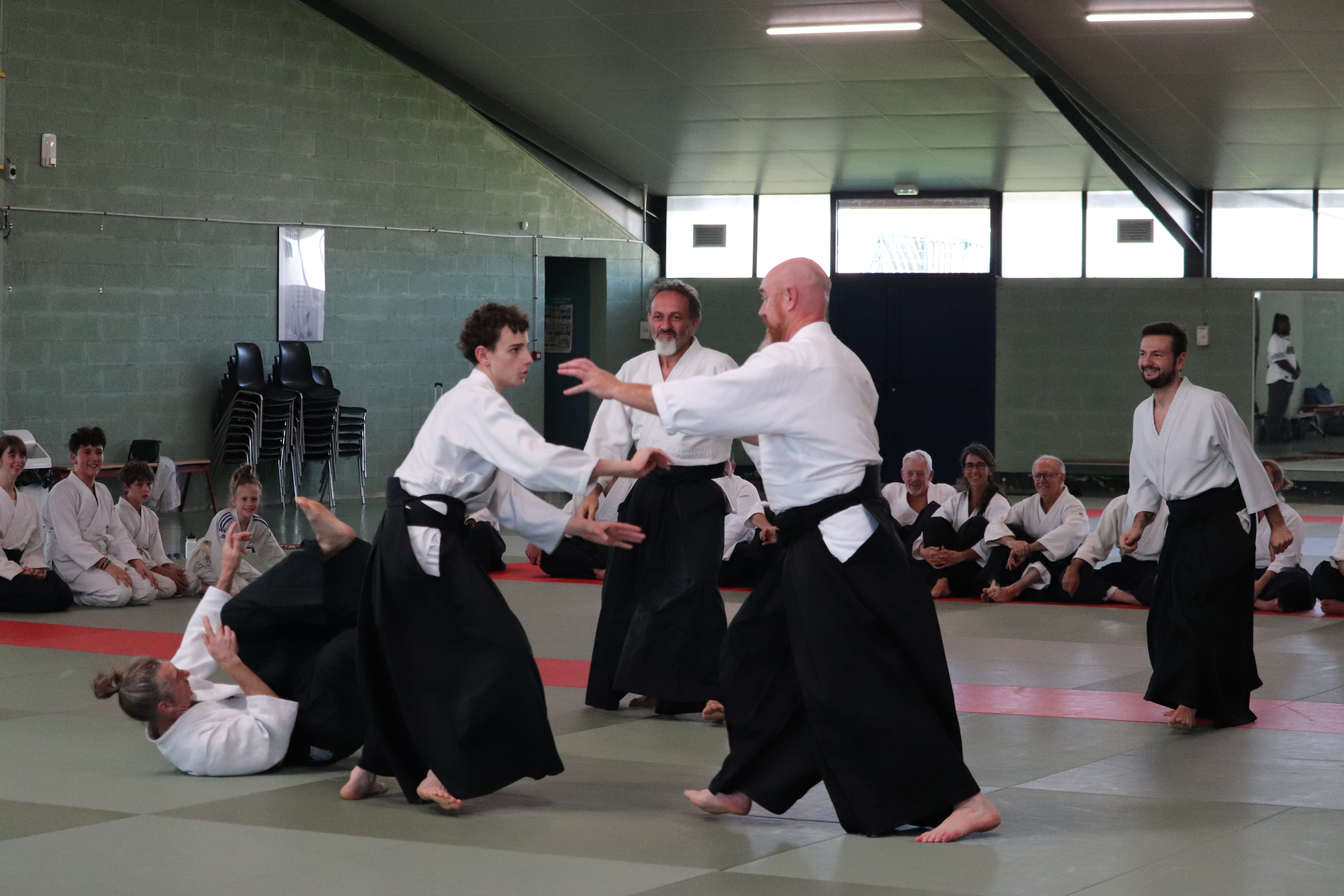 • Préparation aux ukémis ; ukémis avant dans toutes les directions ; ukémis arrières avec le bras qui se pose sur le tatami.