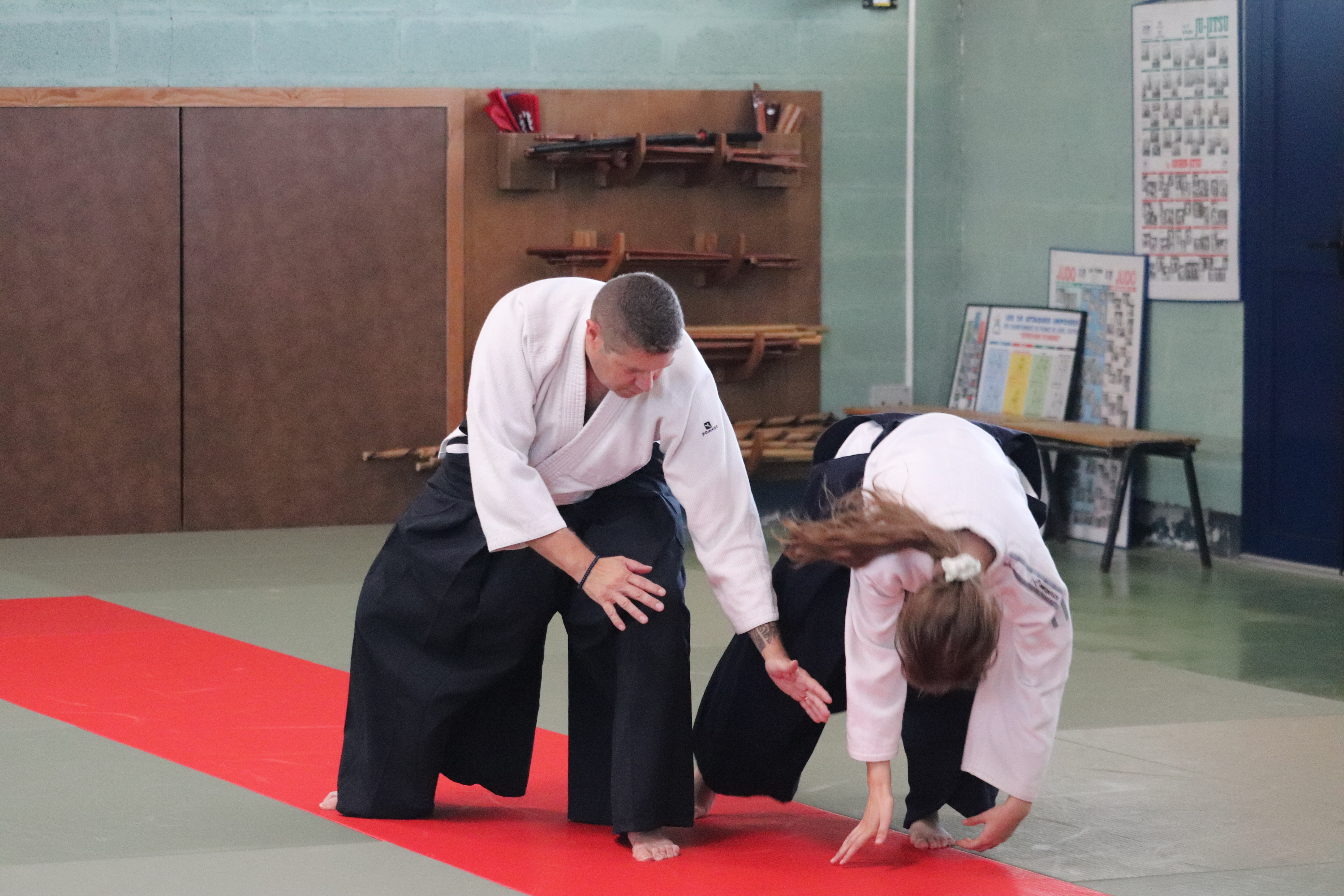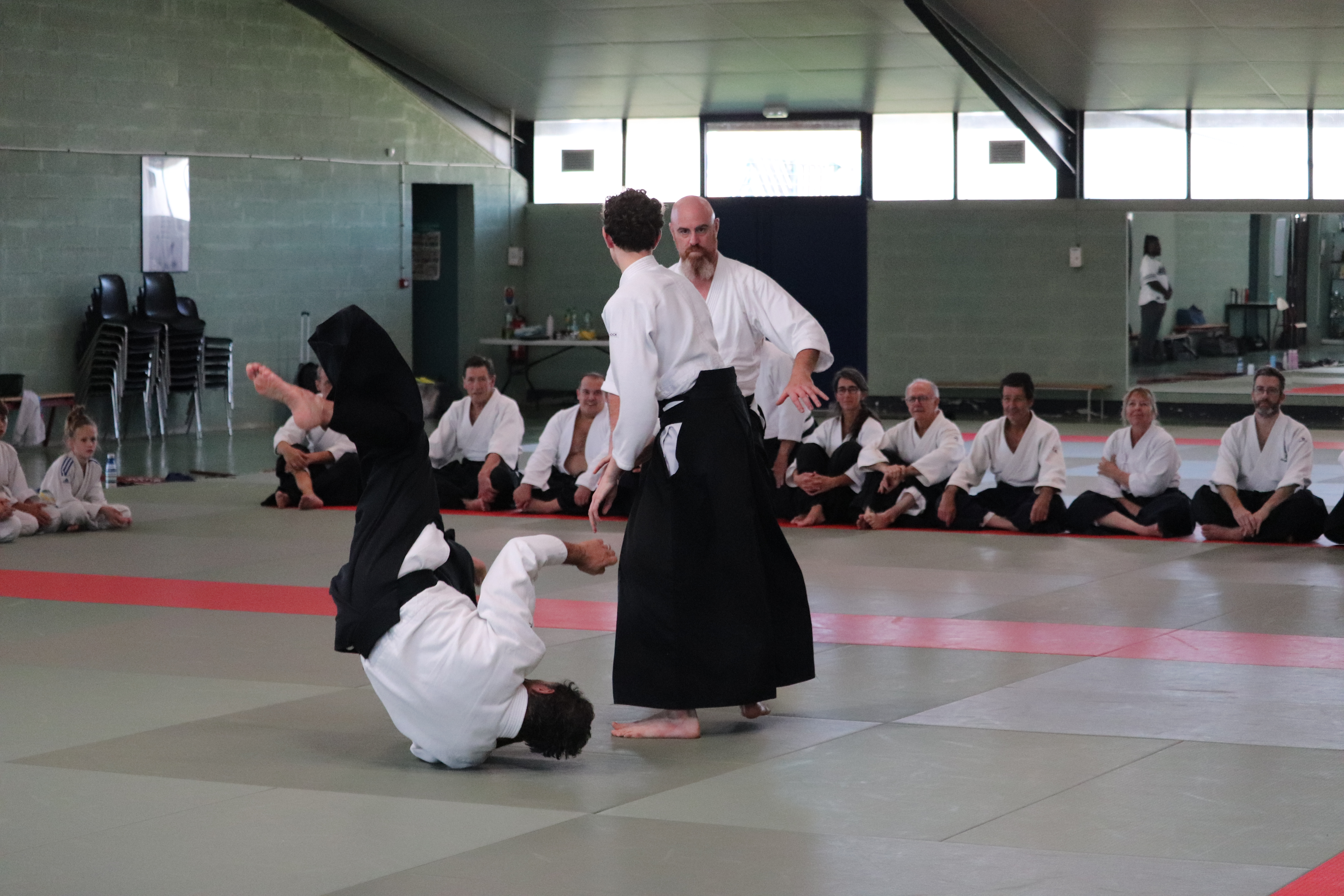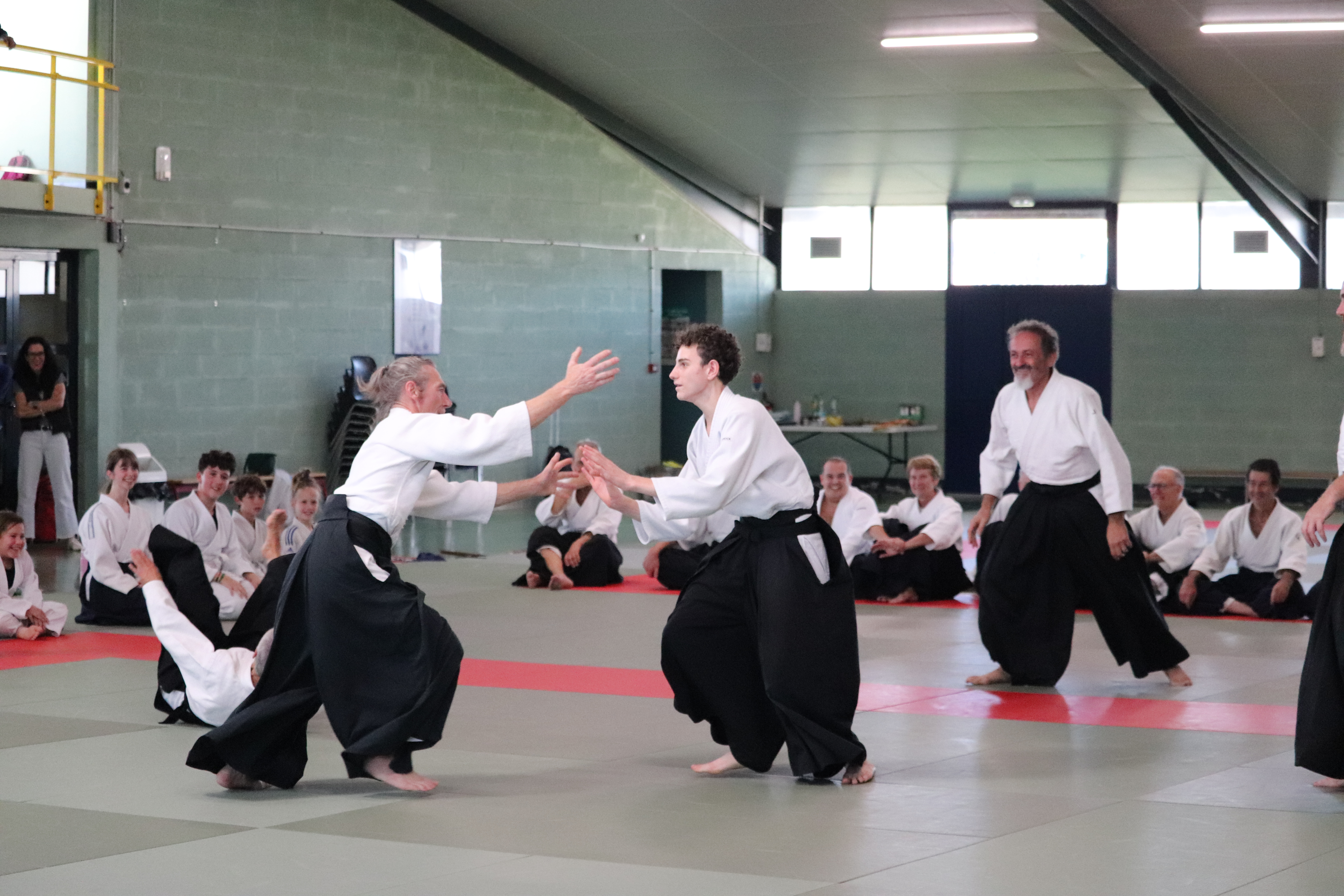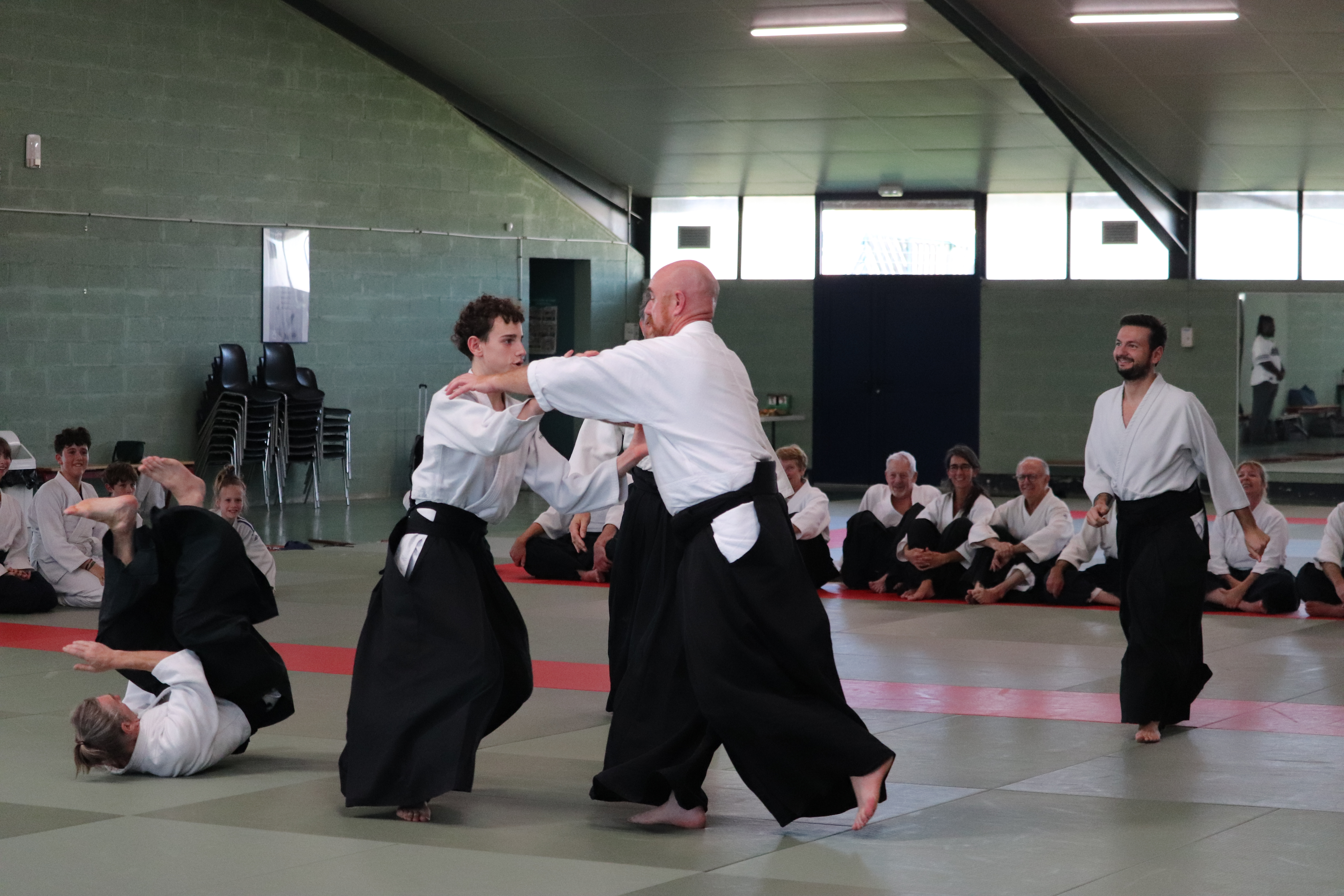 • Préparation aux ukémis ; ukémis avant dans toutes les directions ; ukémis arrières avec le bras qui se pose sur le tatami.