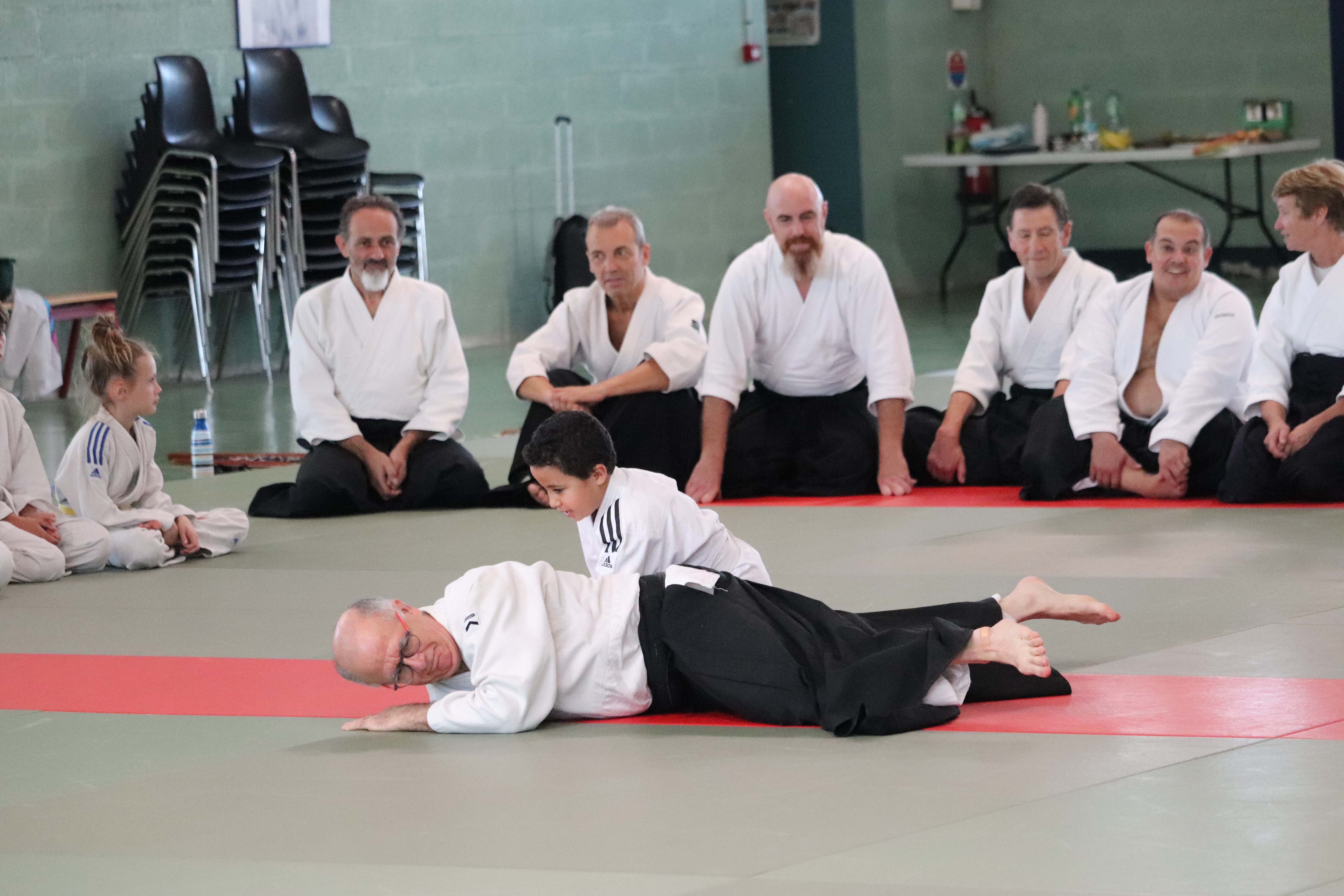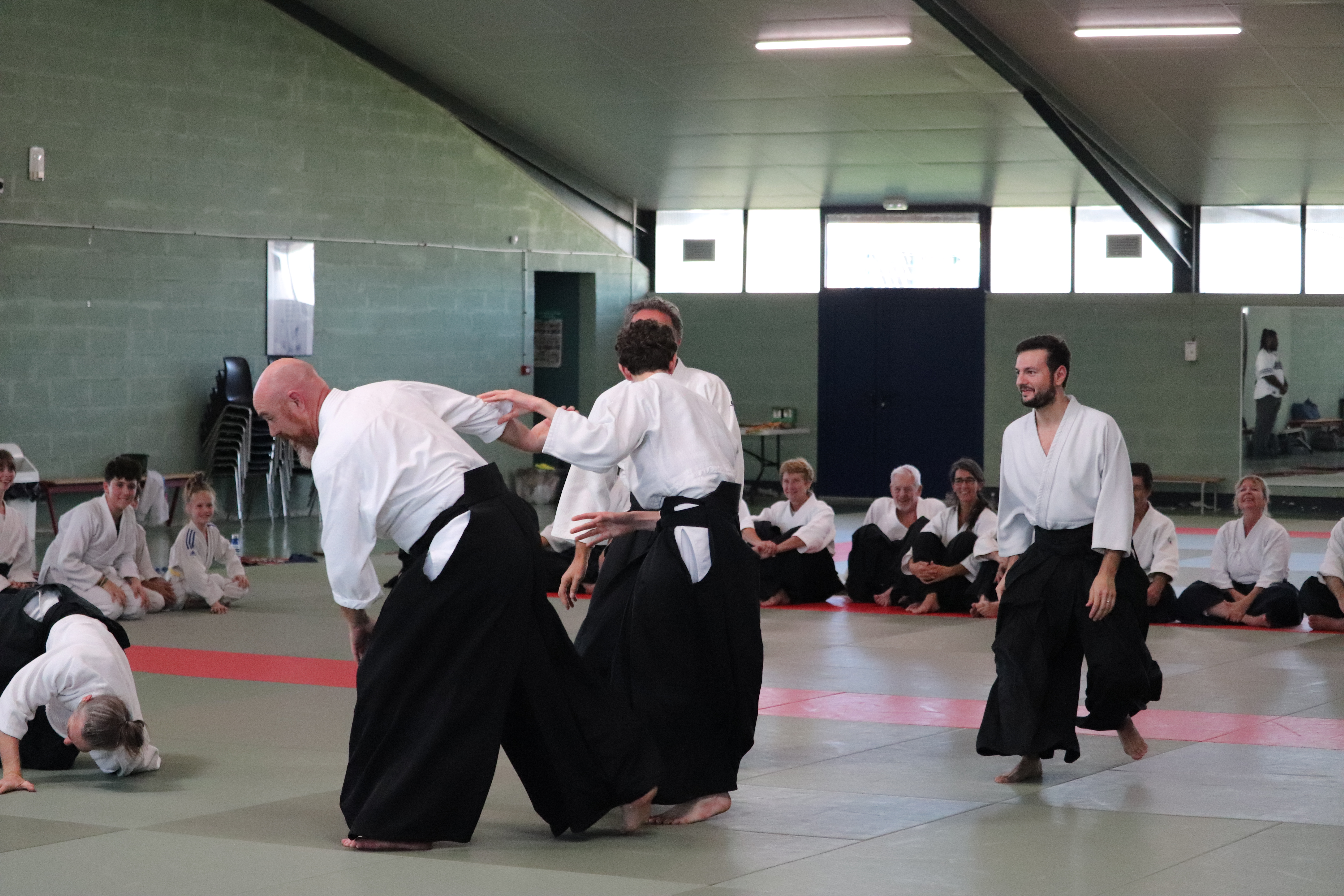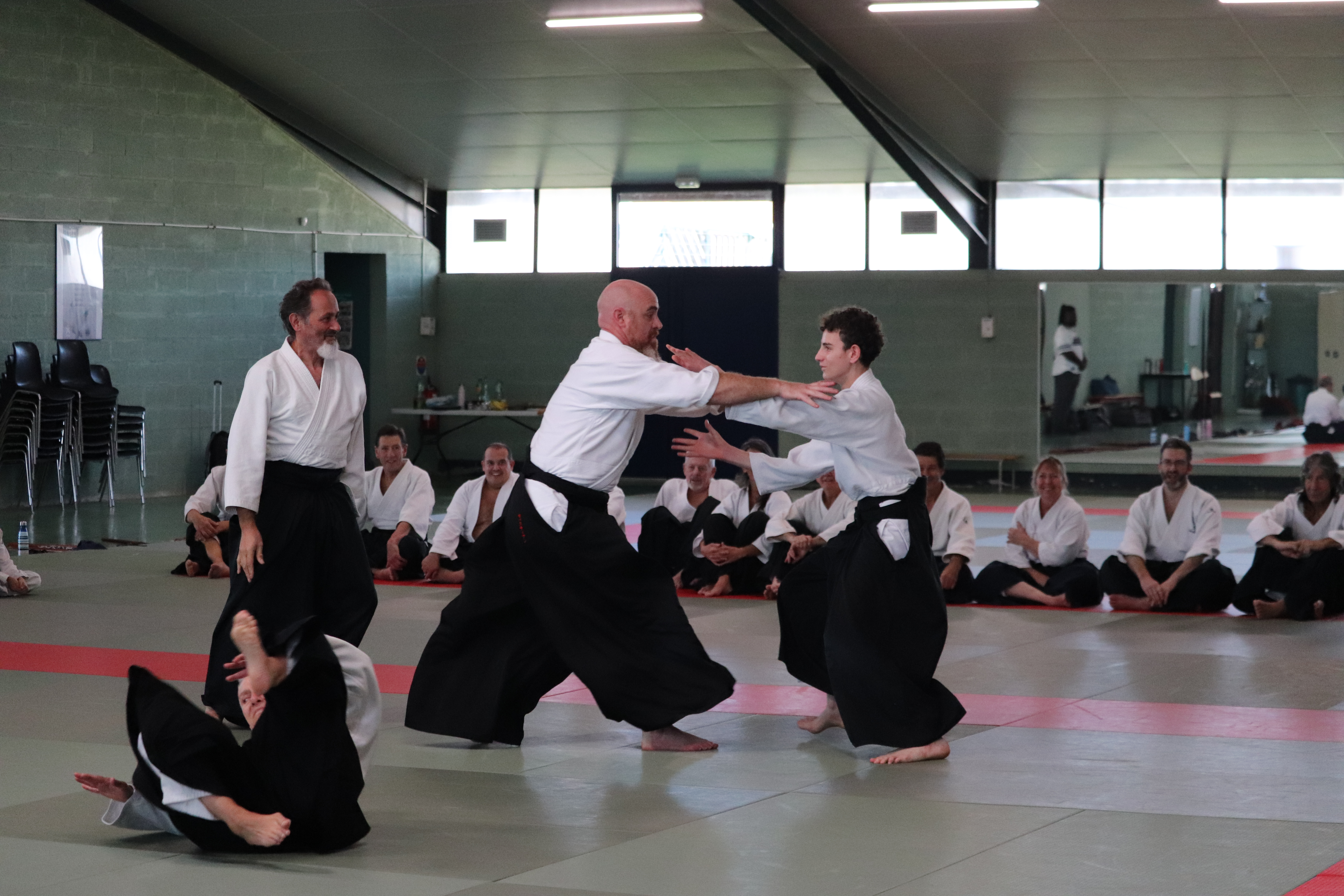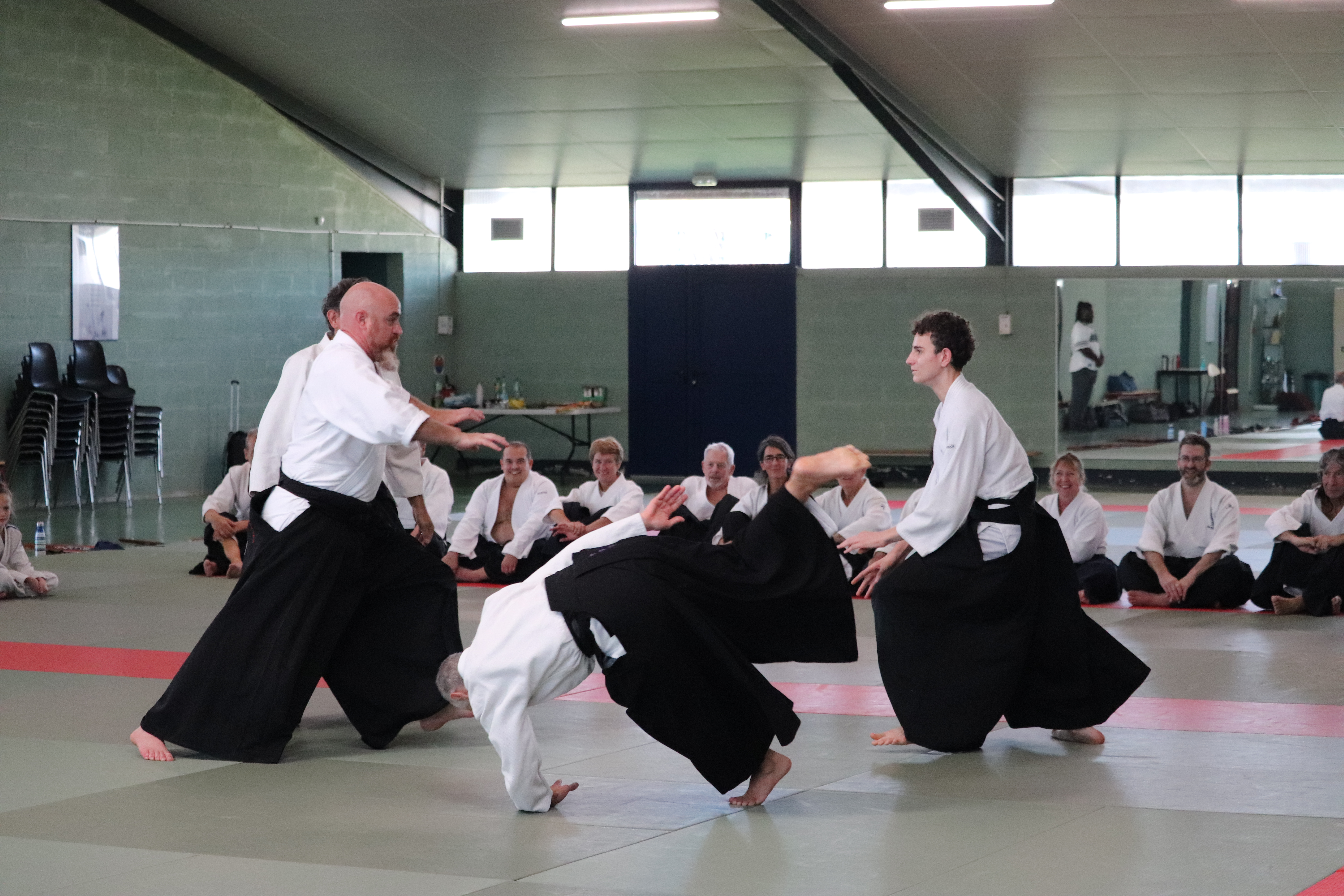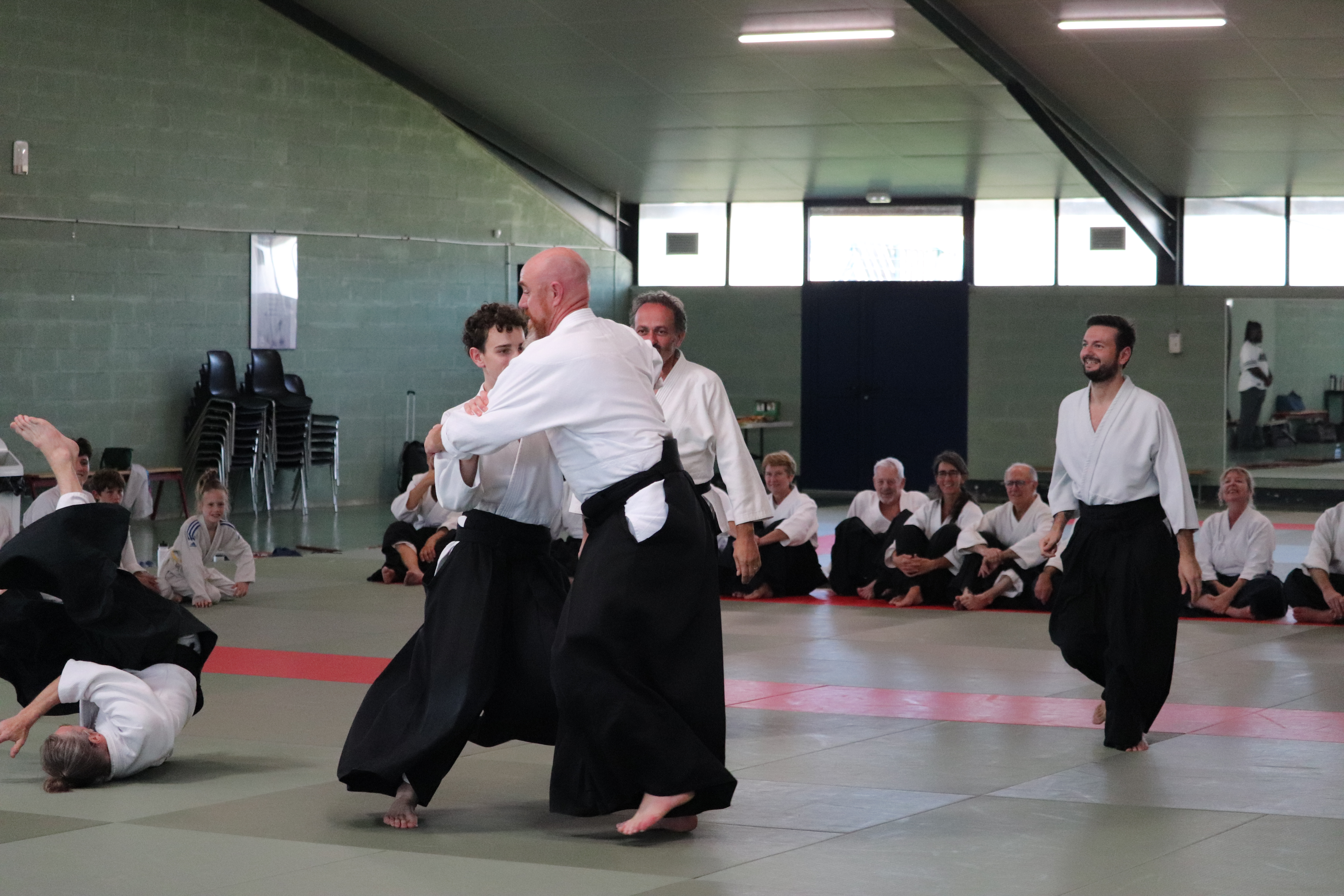 • Préparation aux ukémis ; ukémis avant dans toutes les directions ; ukémis arrières avec le bras qui se pose sur le tatami.