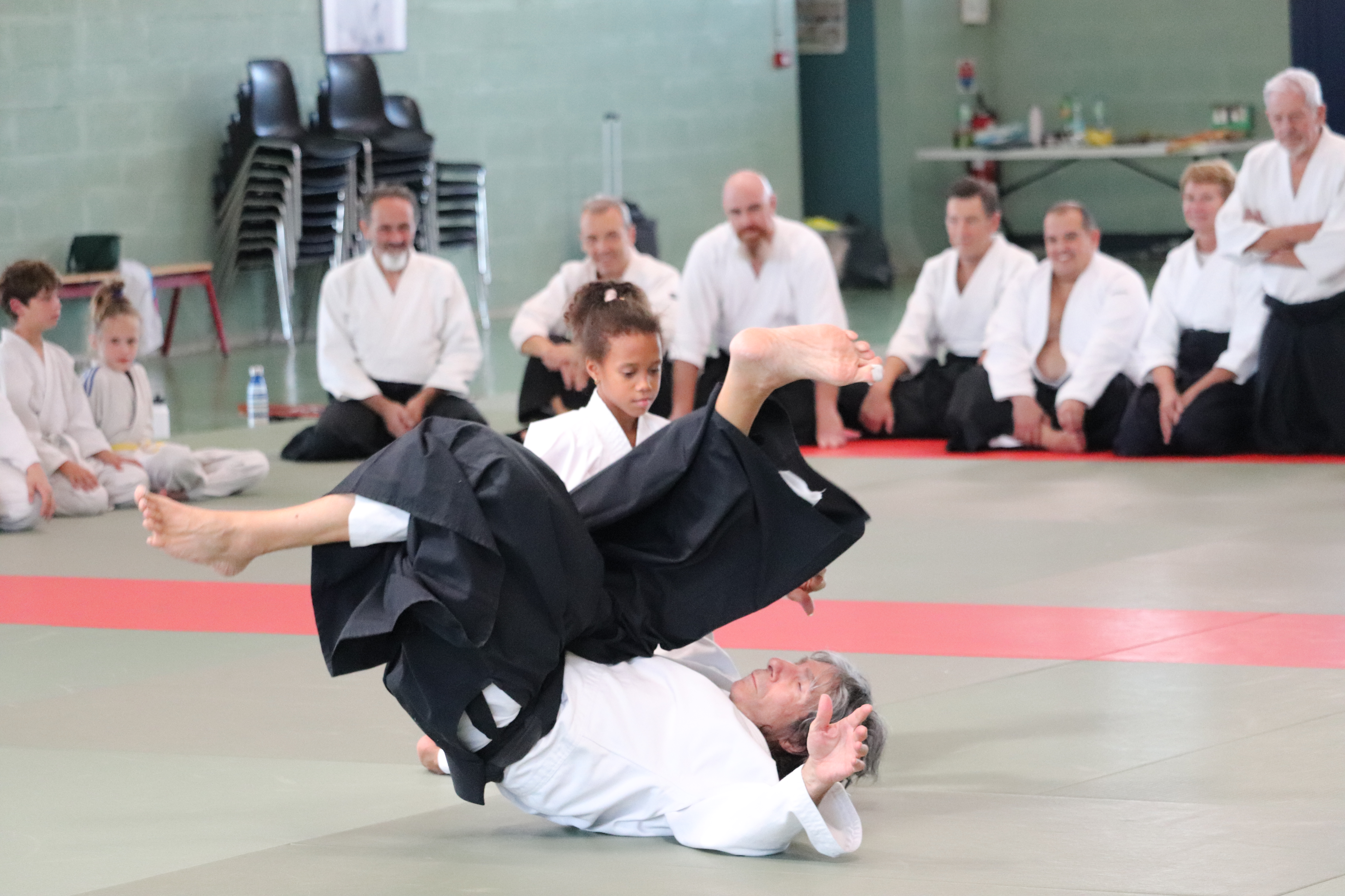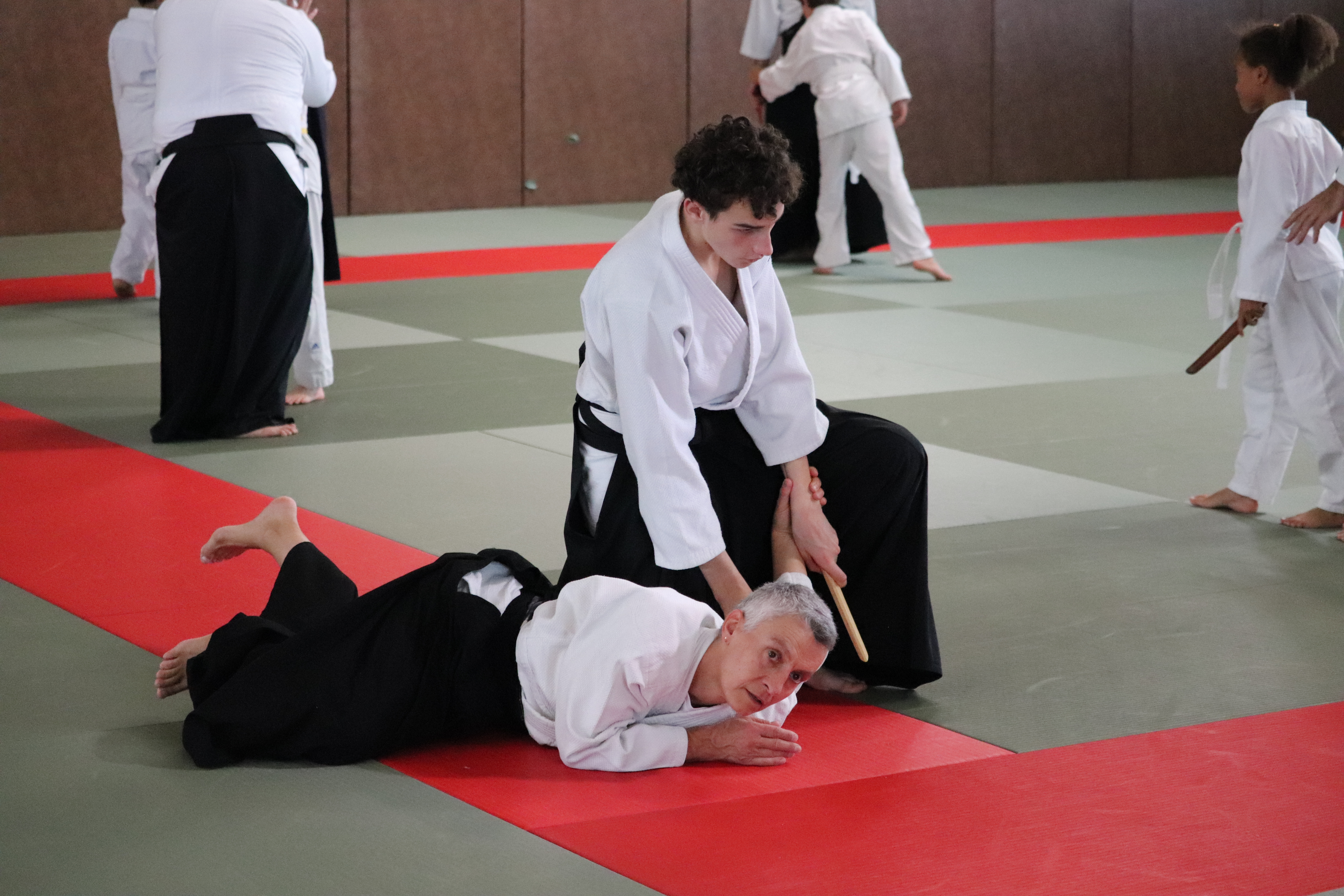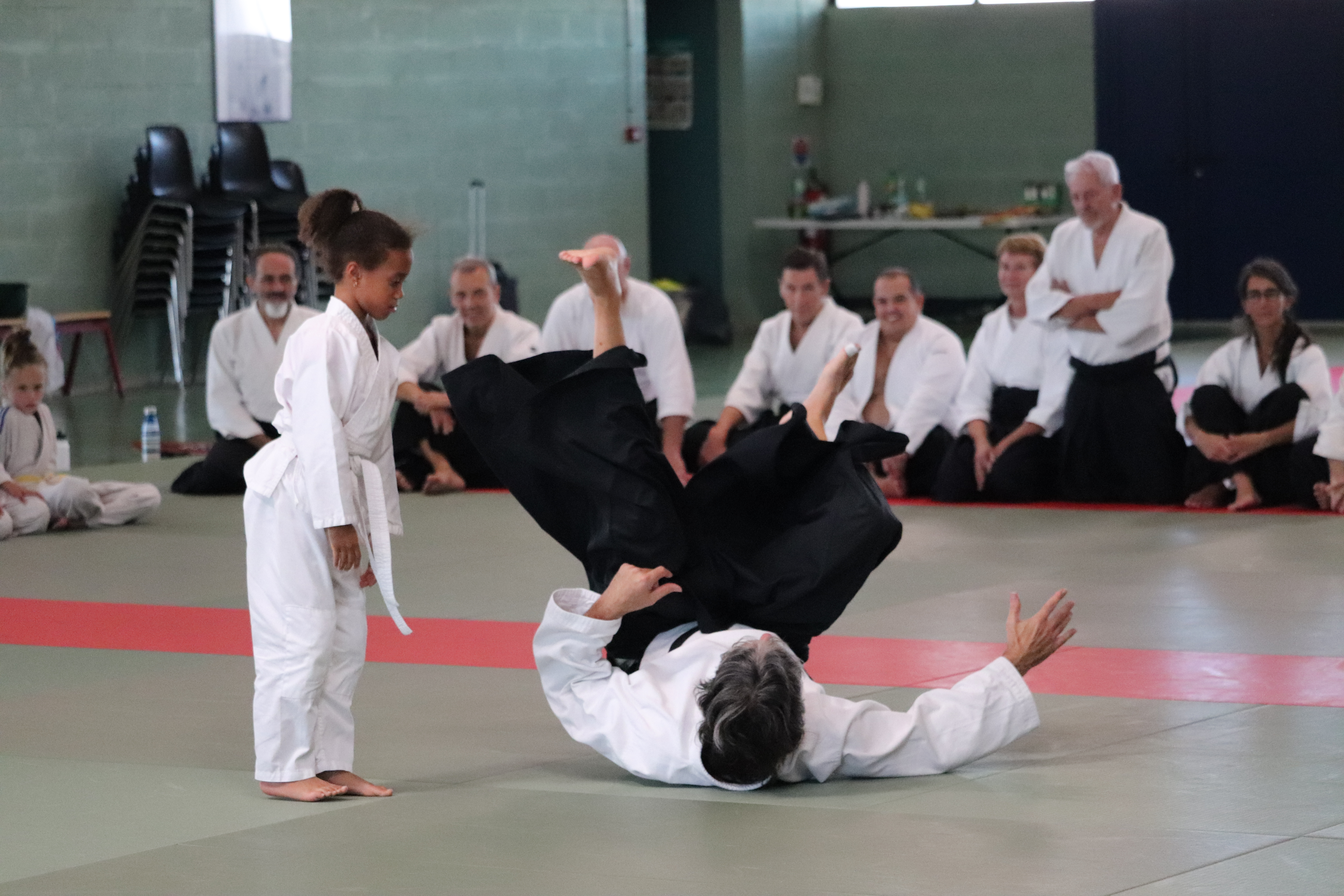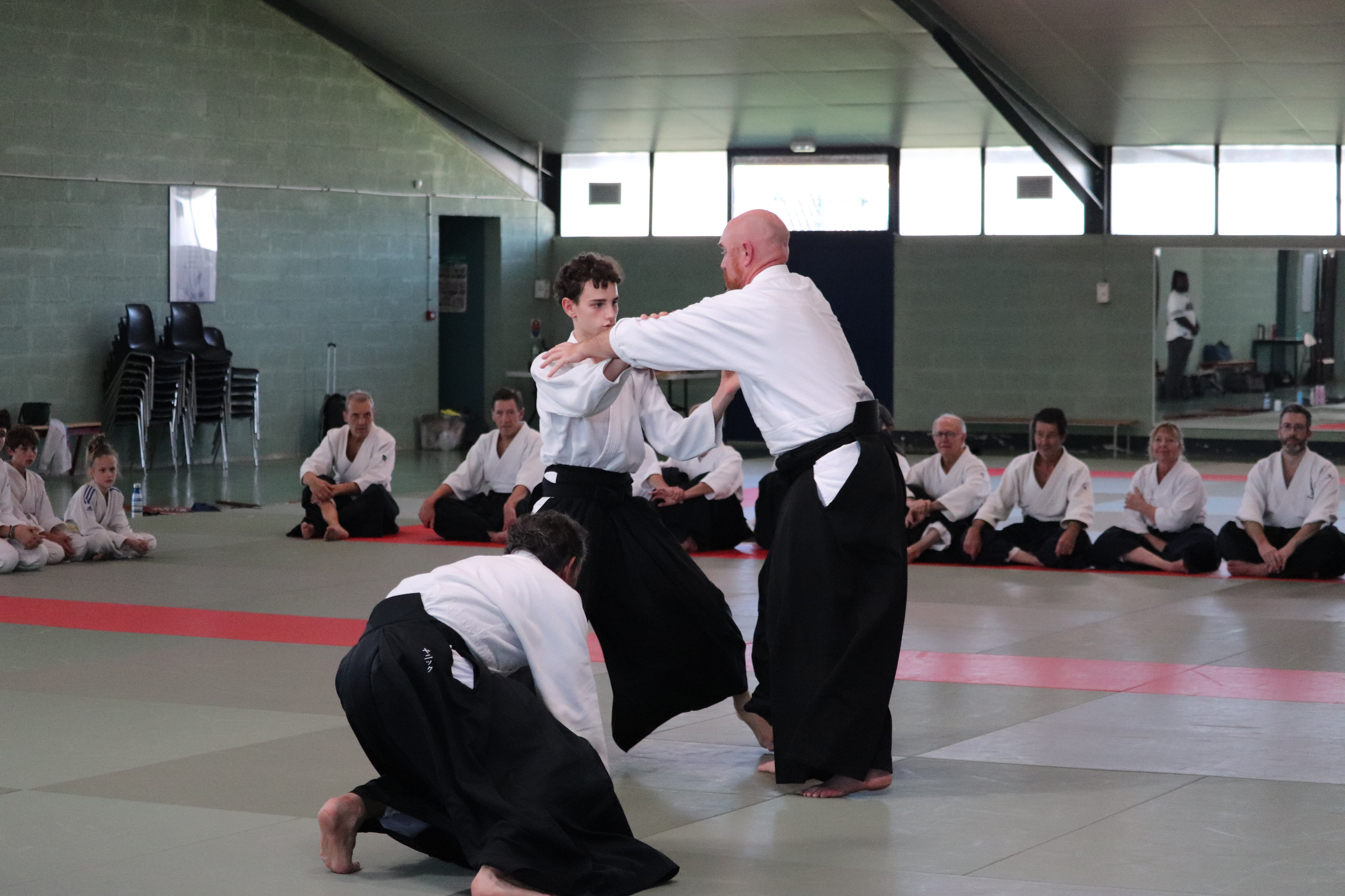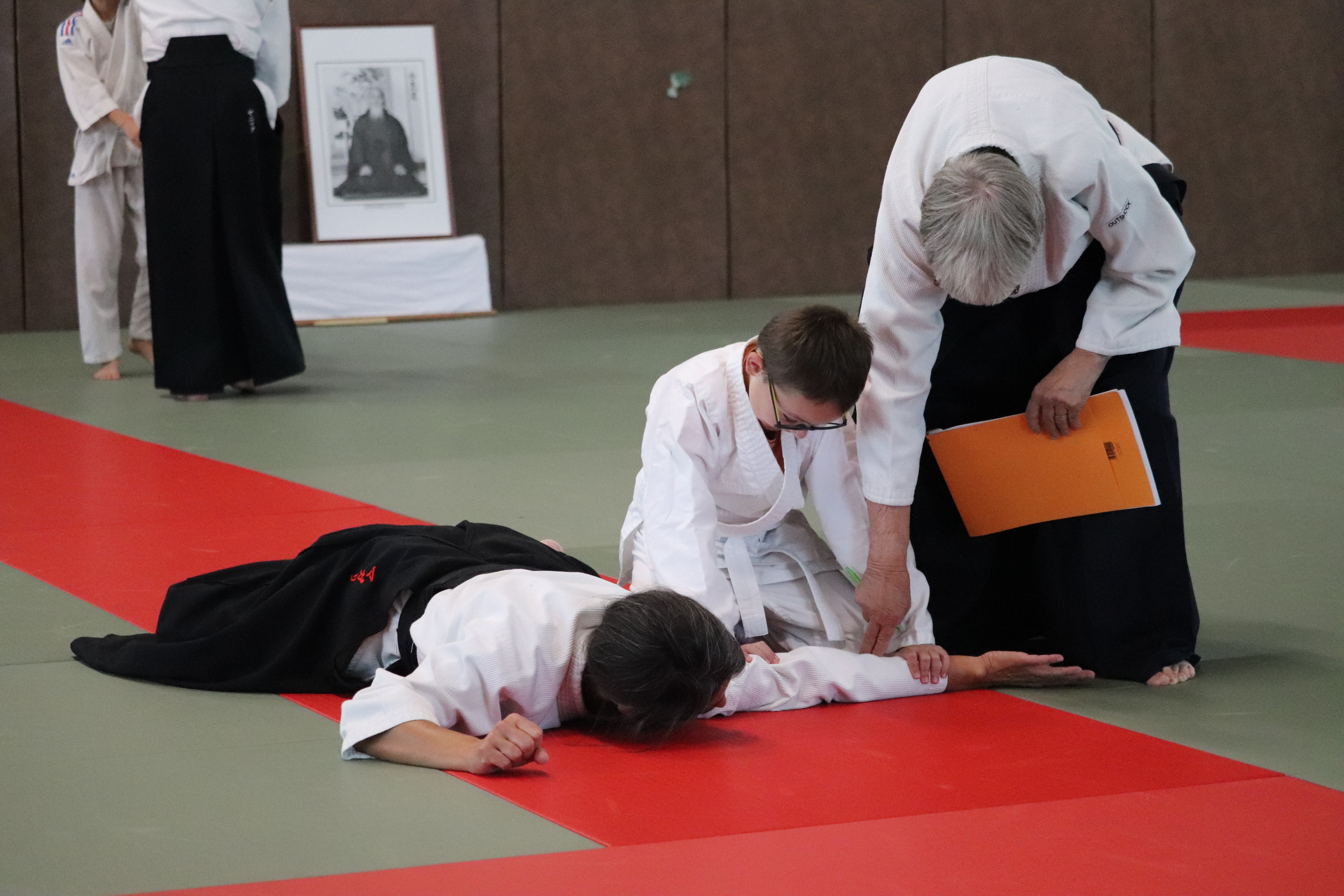 • Préparation aux ukémis ; ukémis avant dans toutes les directions ; ukémis arrières avec le bras qui se pose sur le tatami.