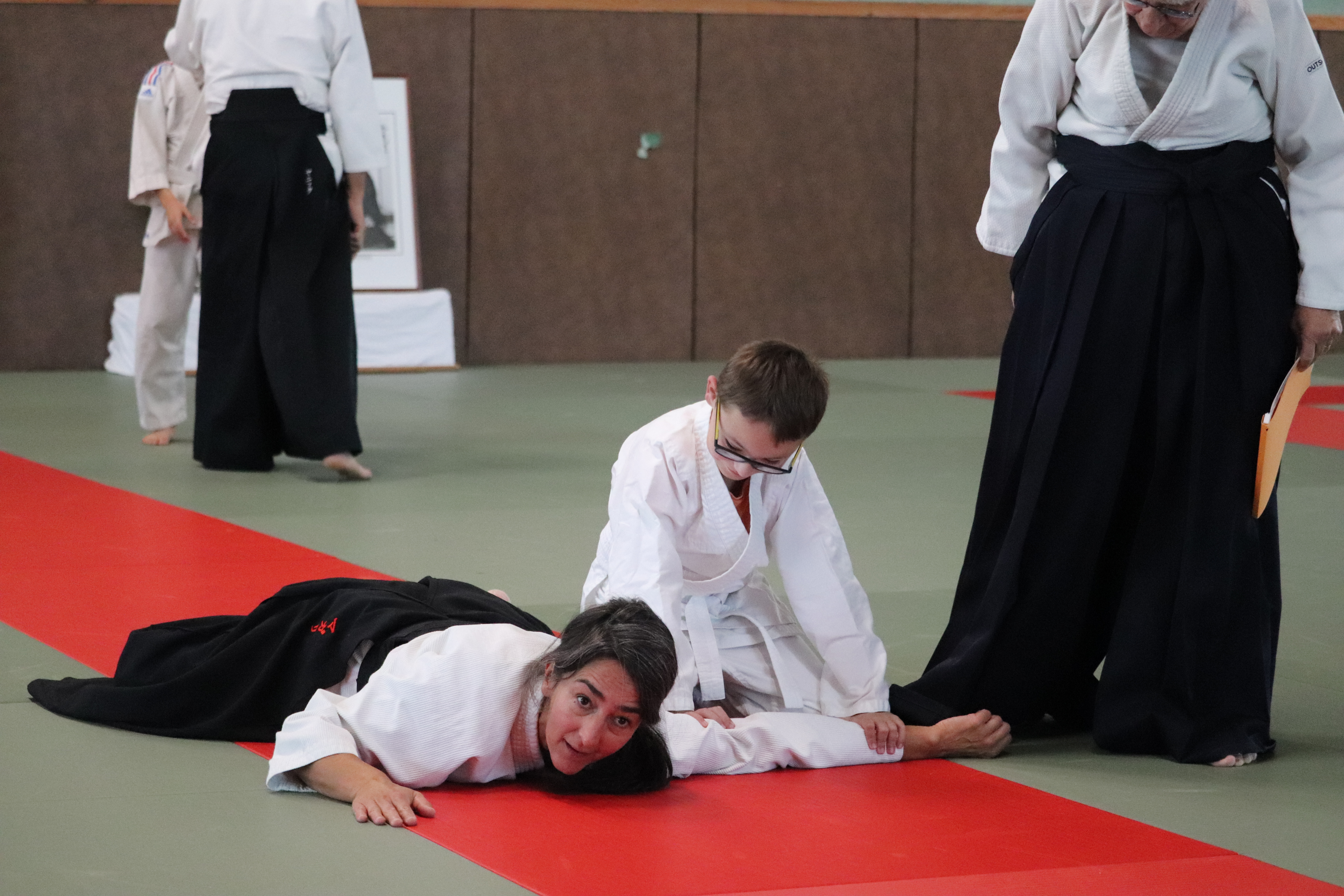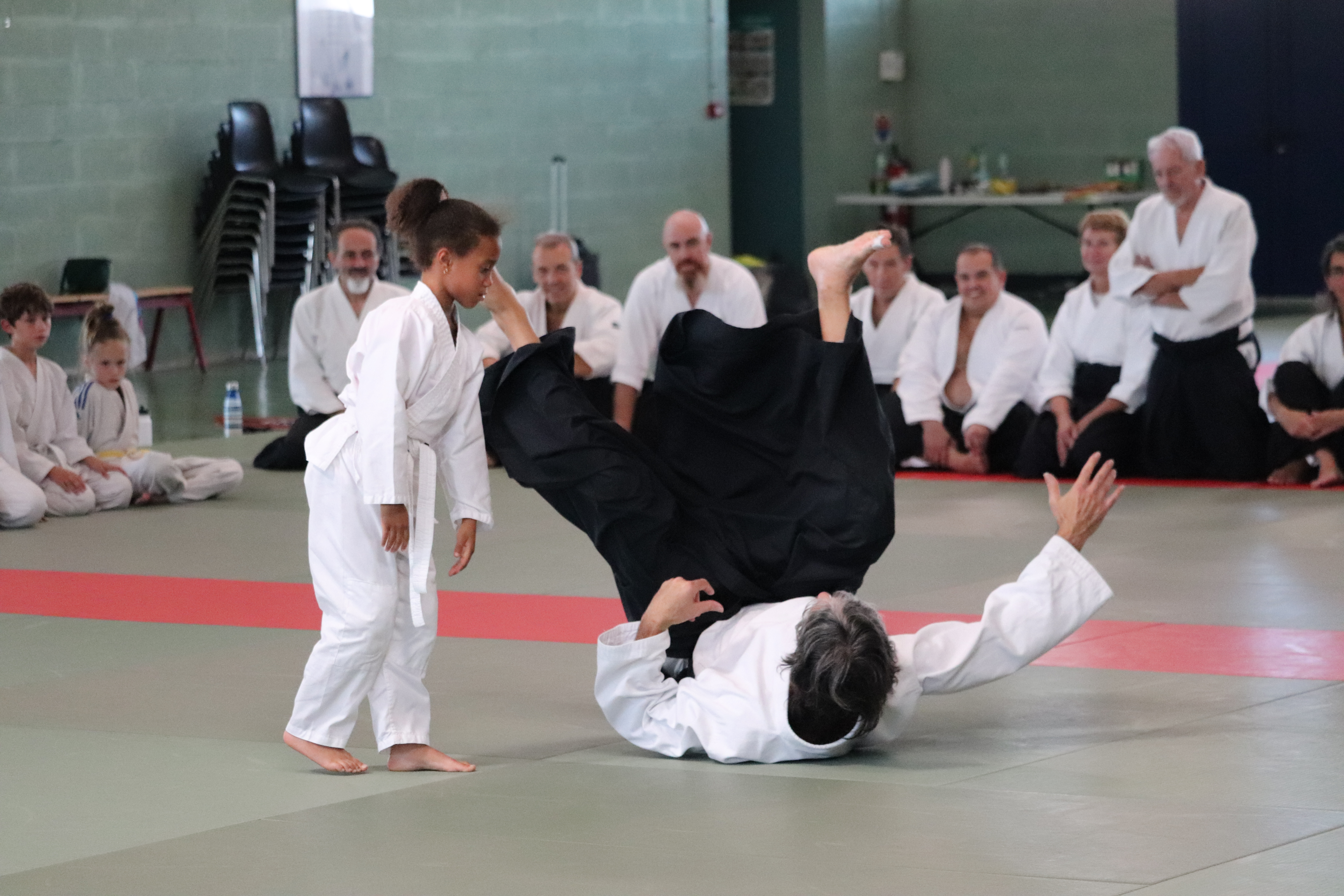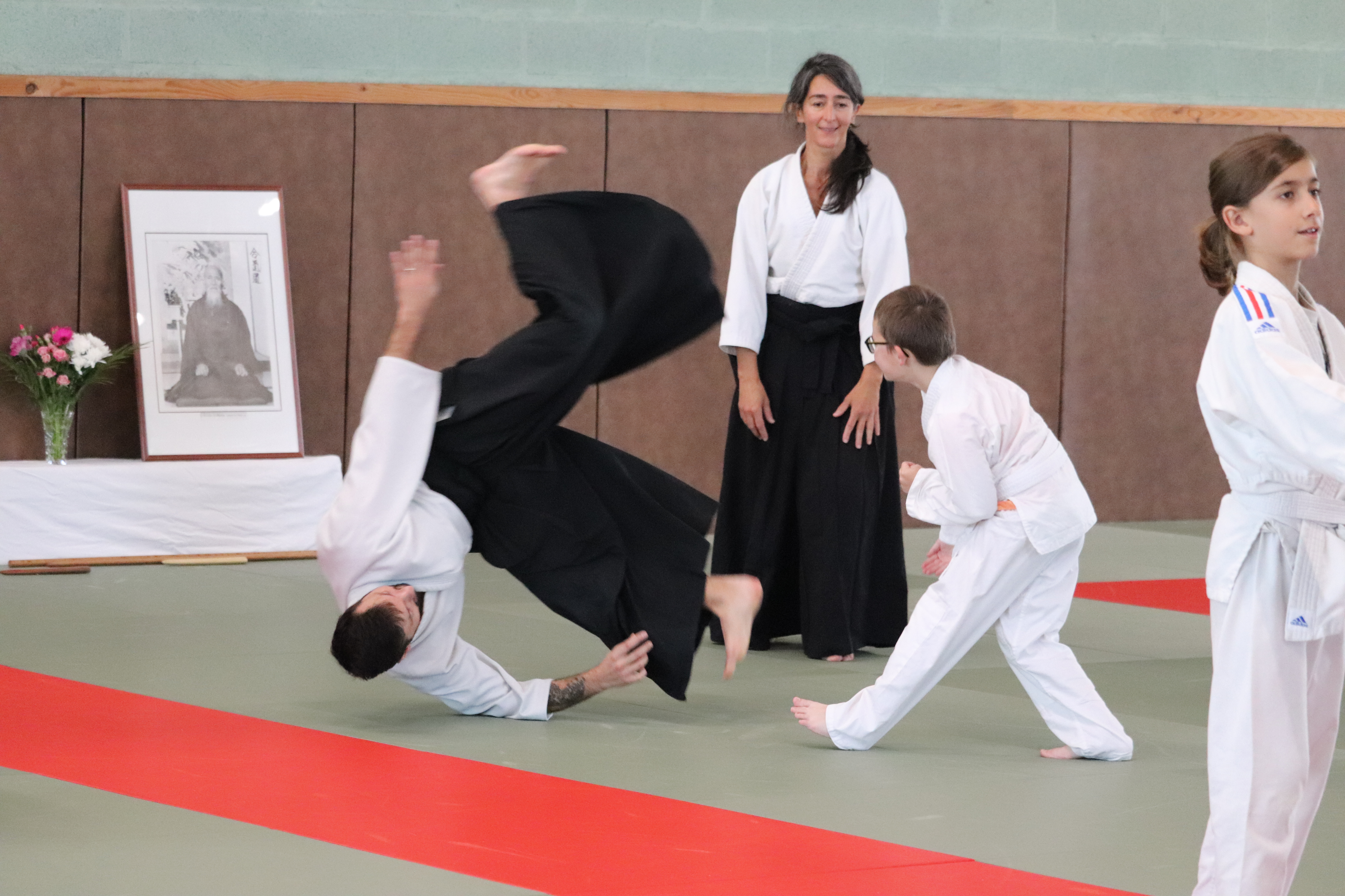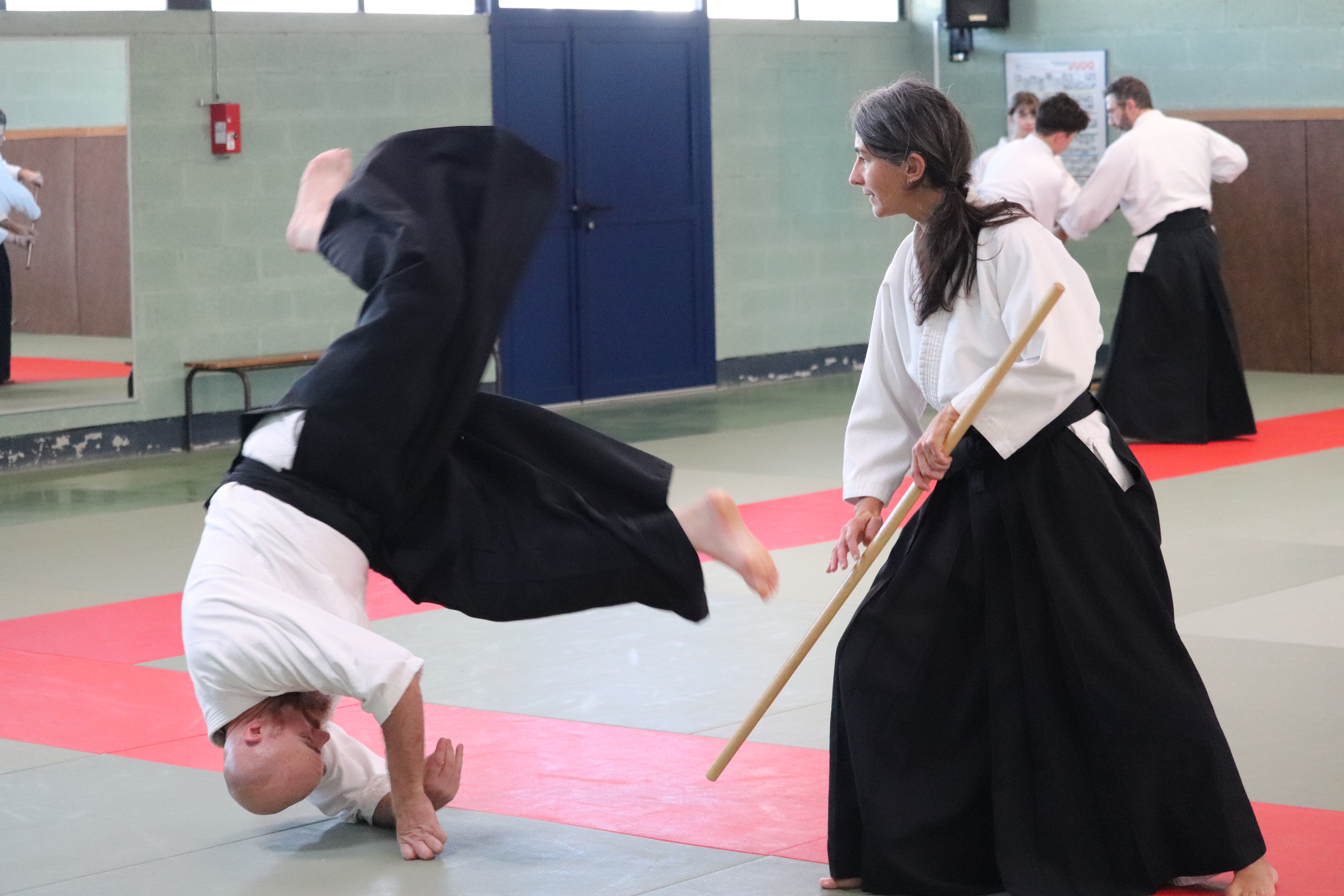 • Préparation aux ukémis ; ukémis avant dans toutes les directions ; ukémis arrières avec le bras qui se pose sur le tatami.