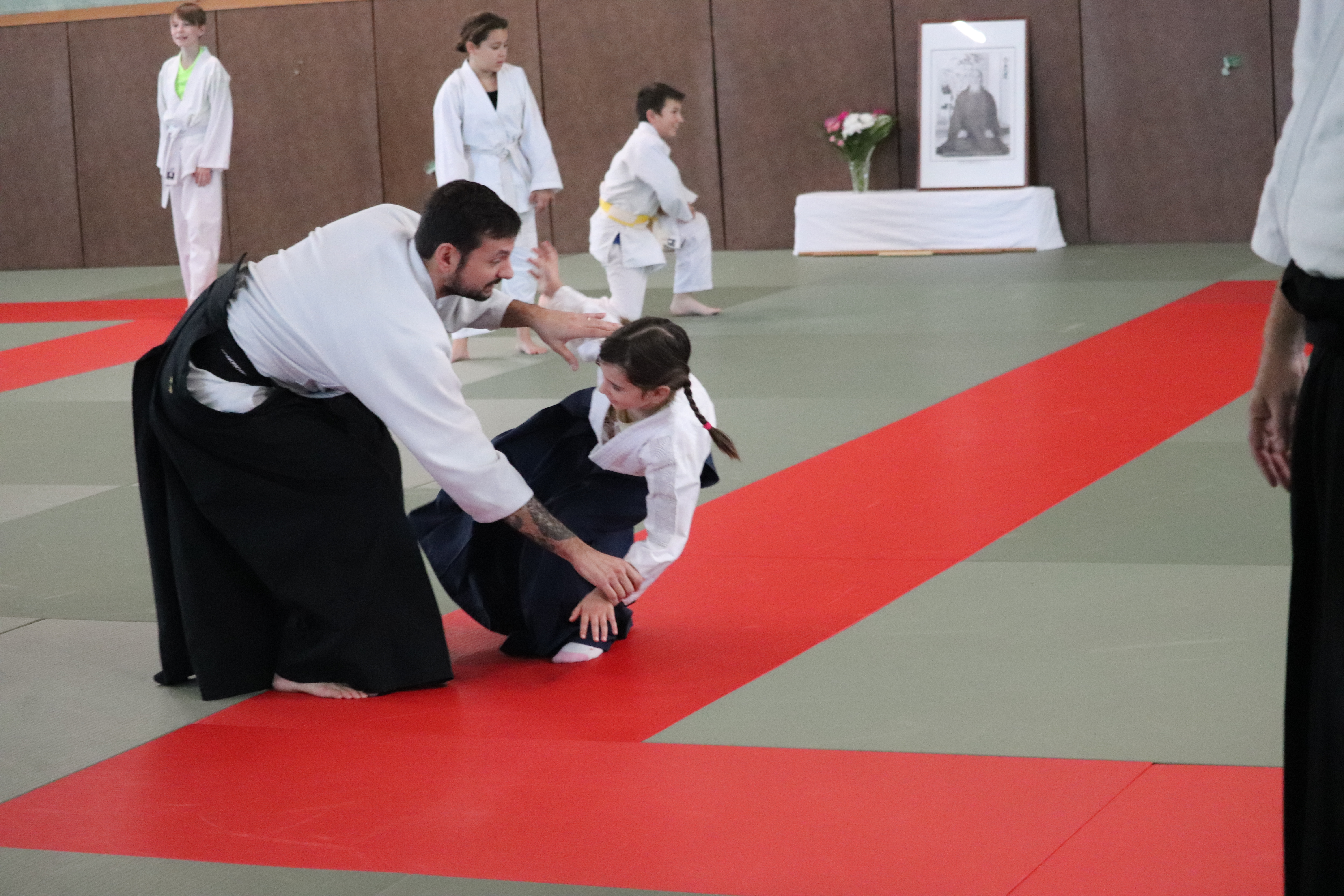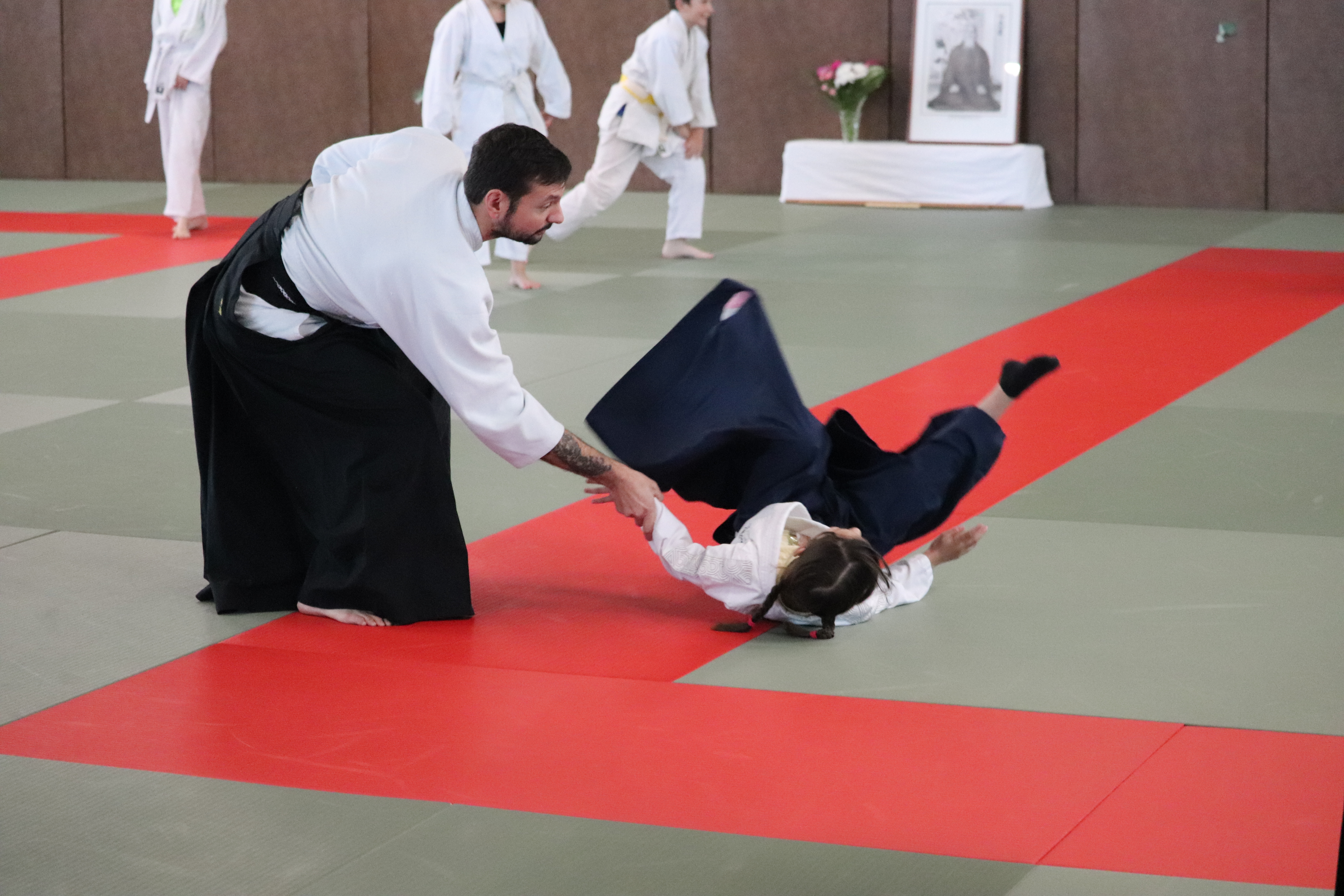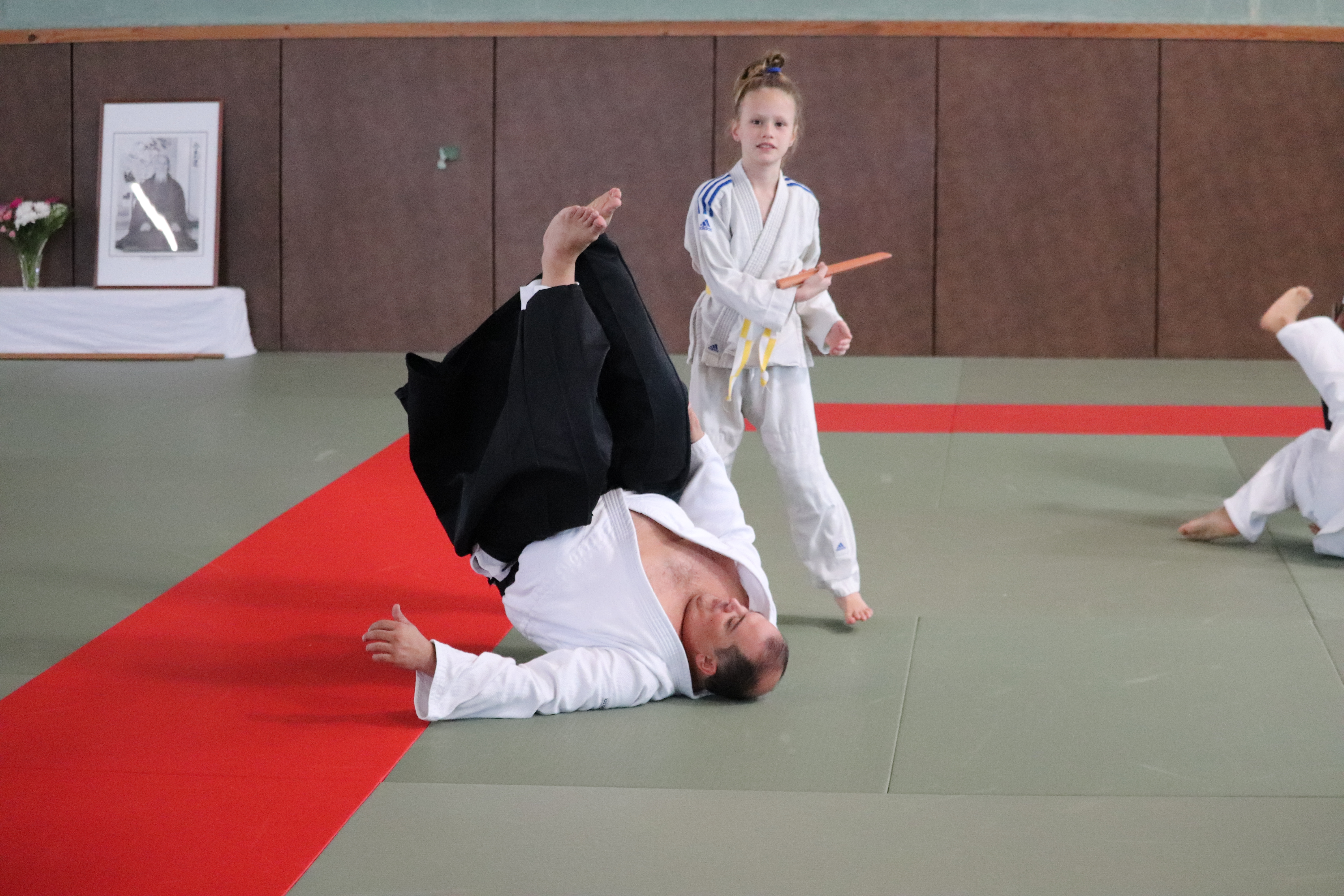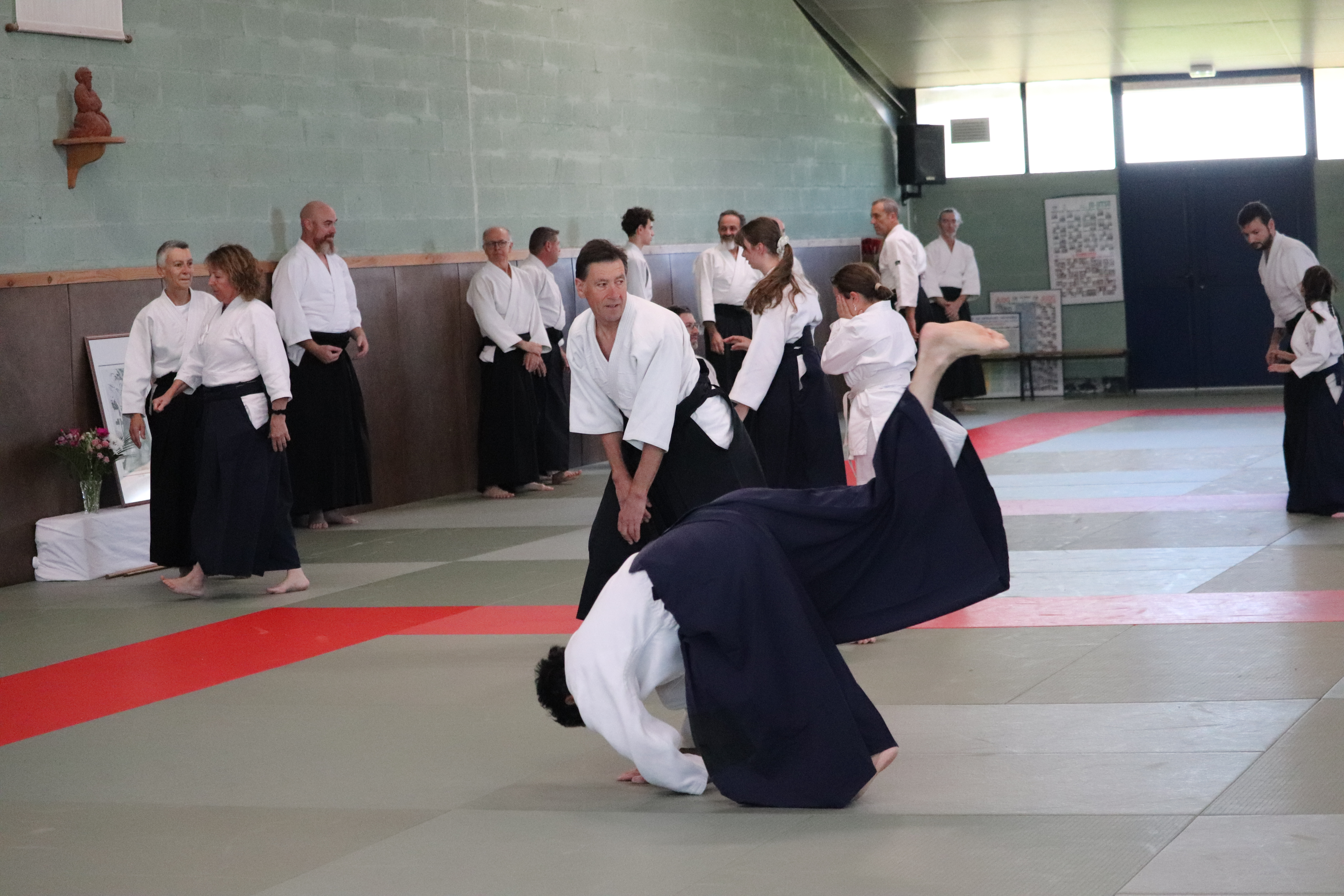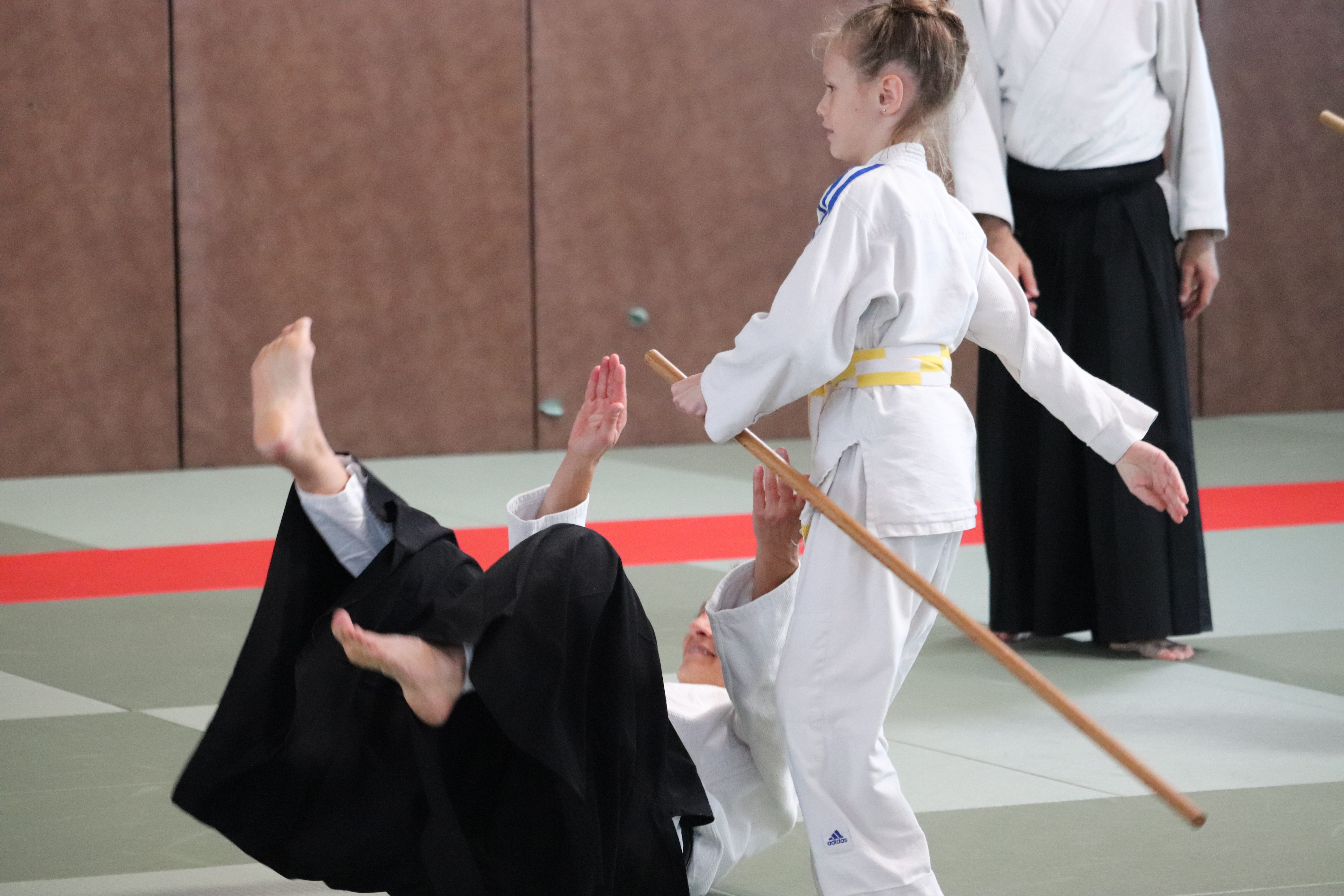 • Préparation aux ukémis ; ukémis avant dans toutes les directions ; ukémis arrières avec le bras qui se pose sur le tatami.