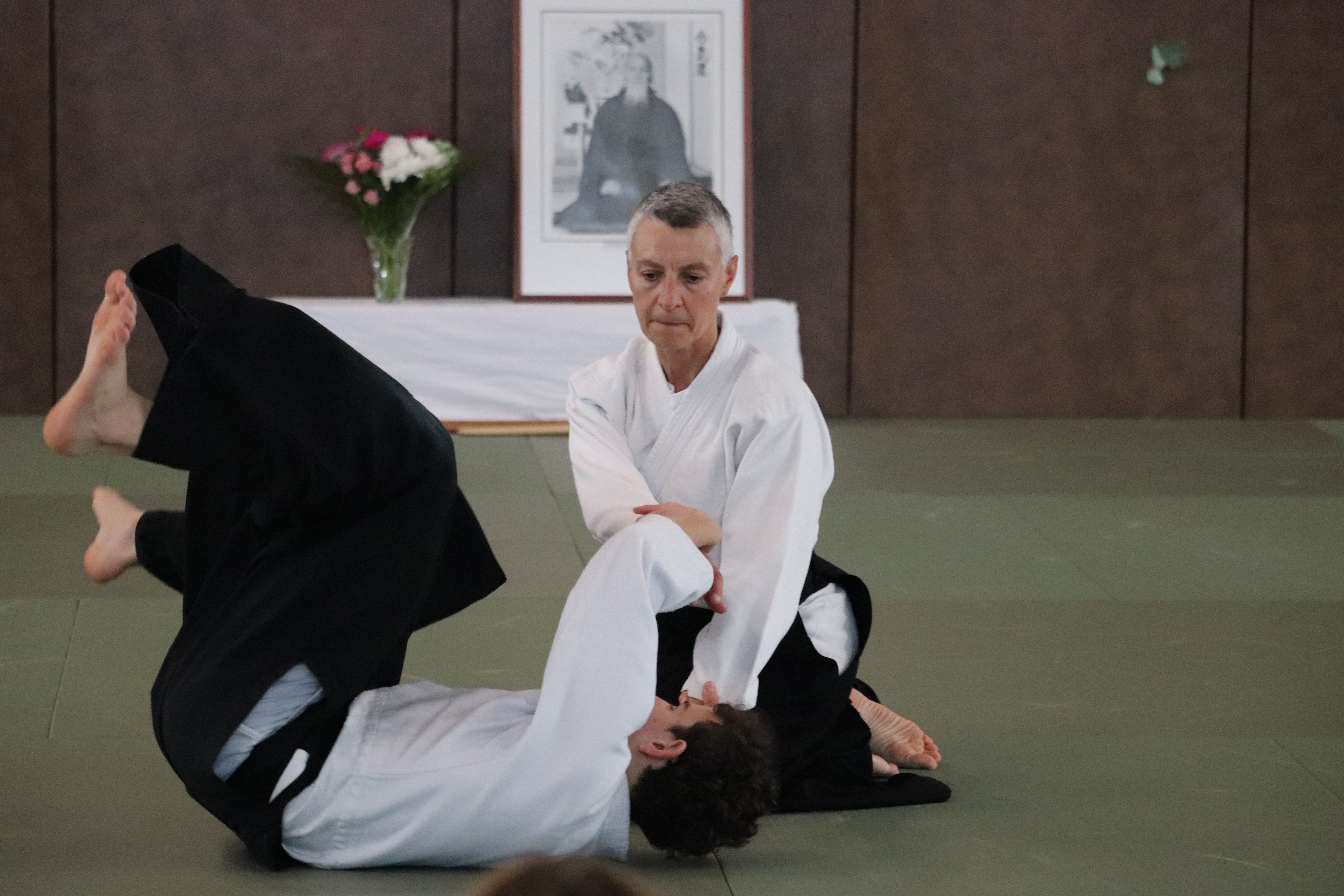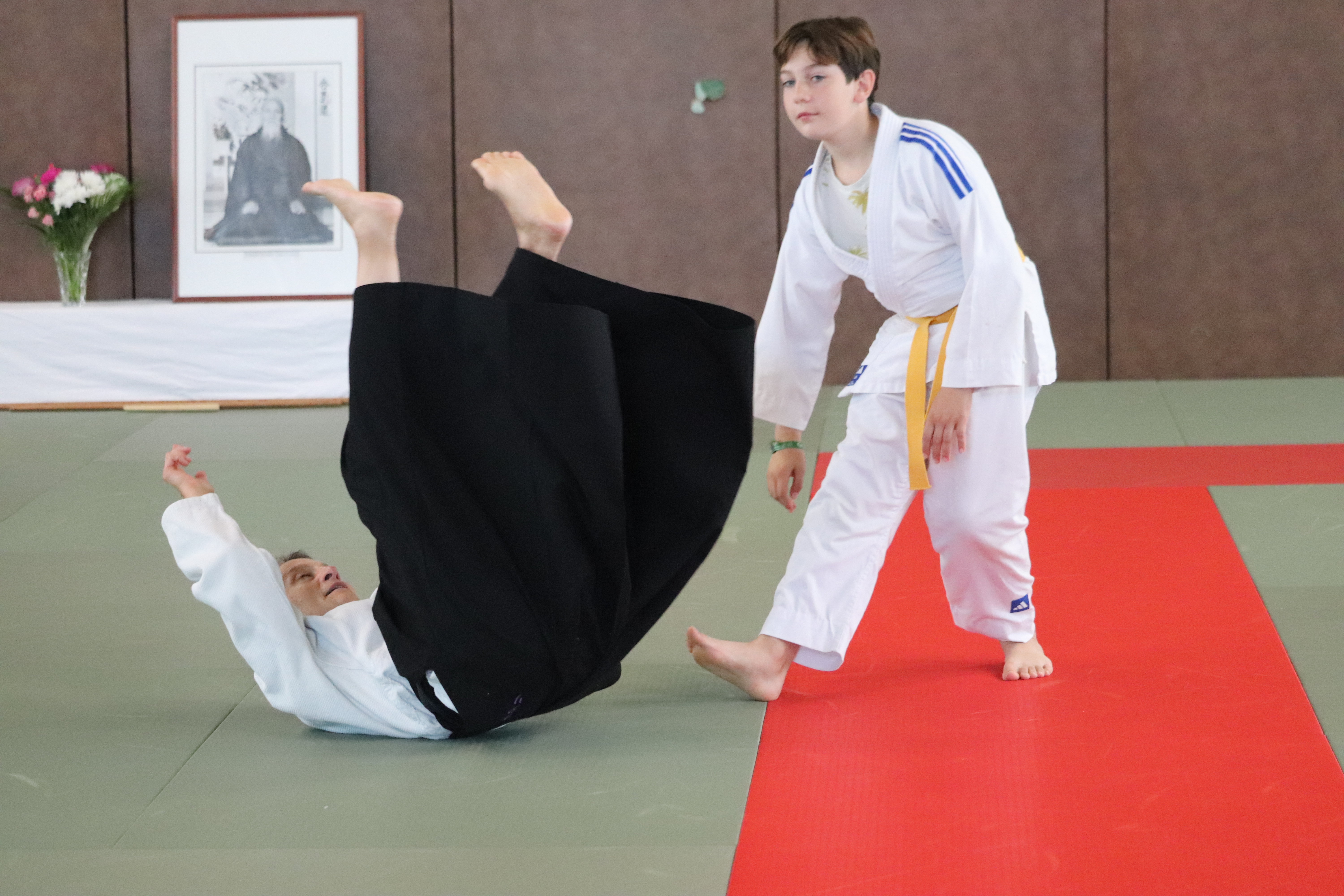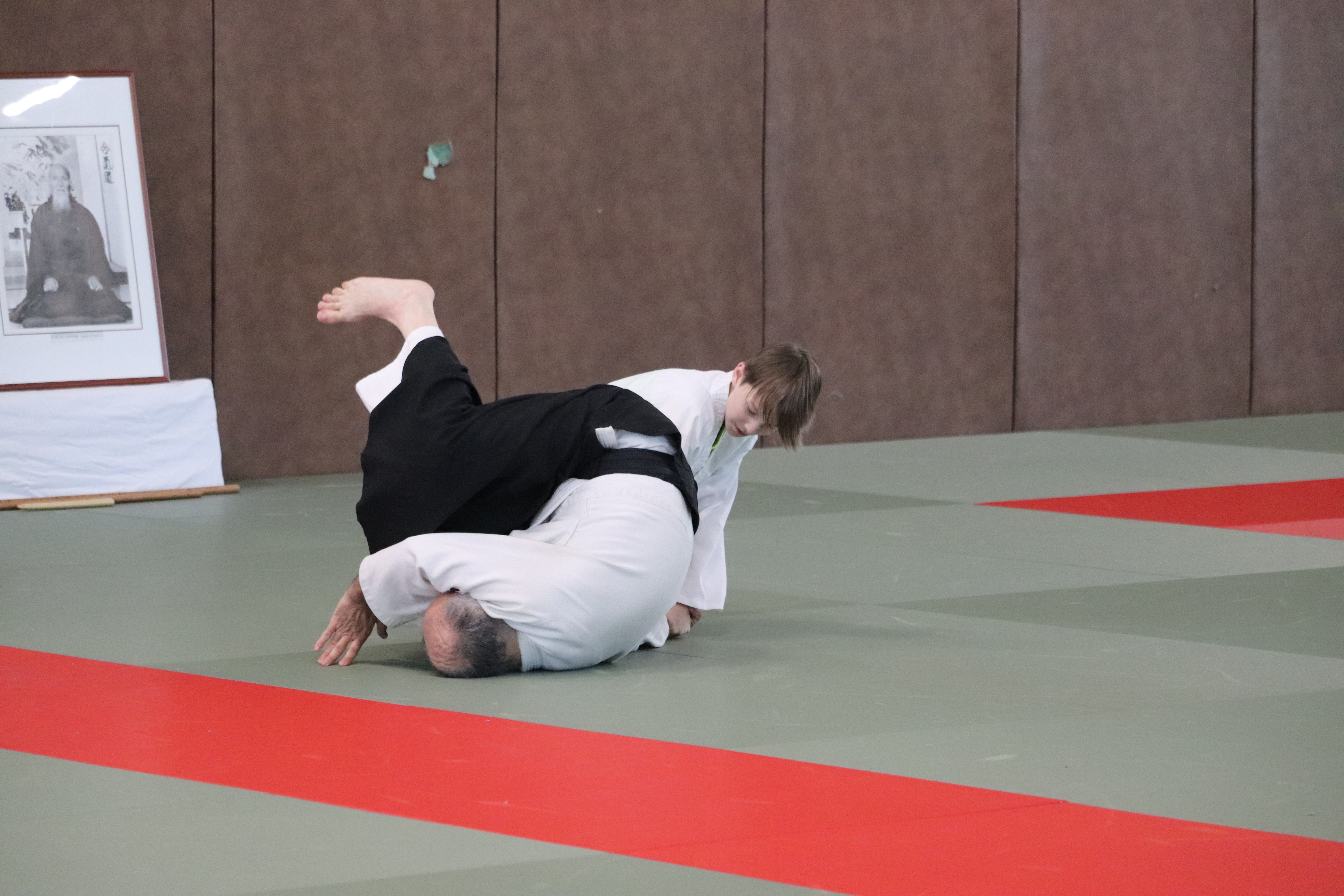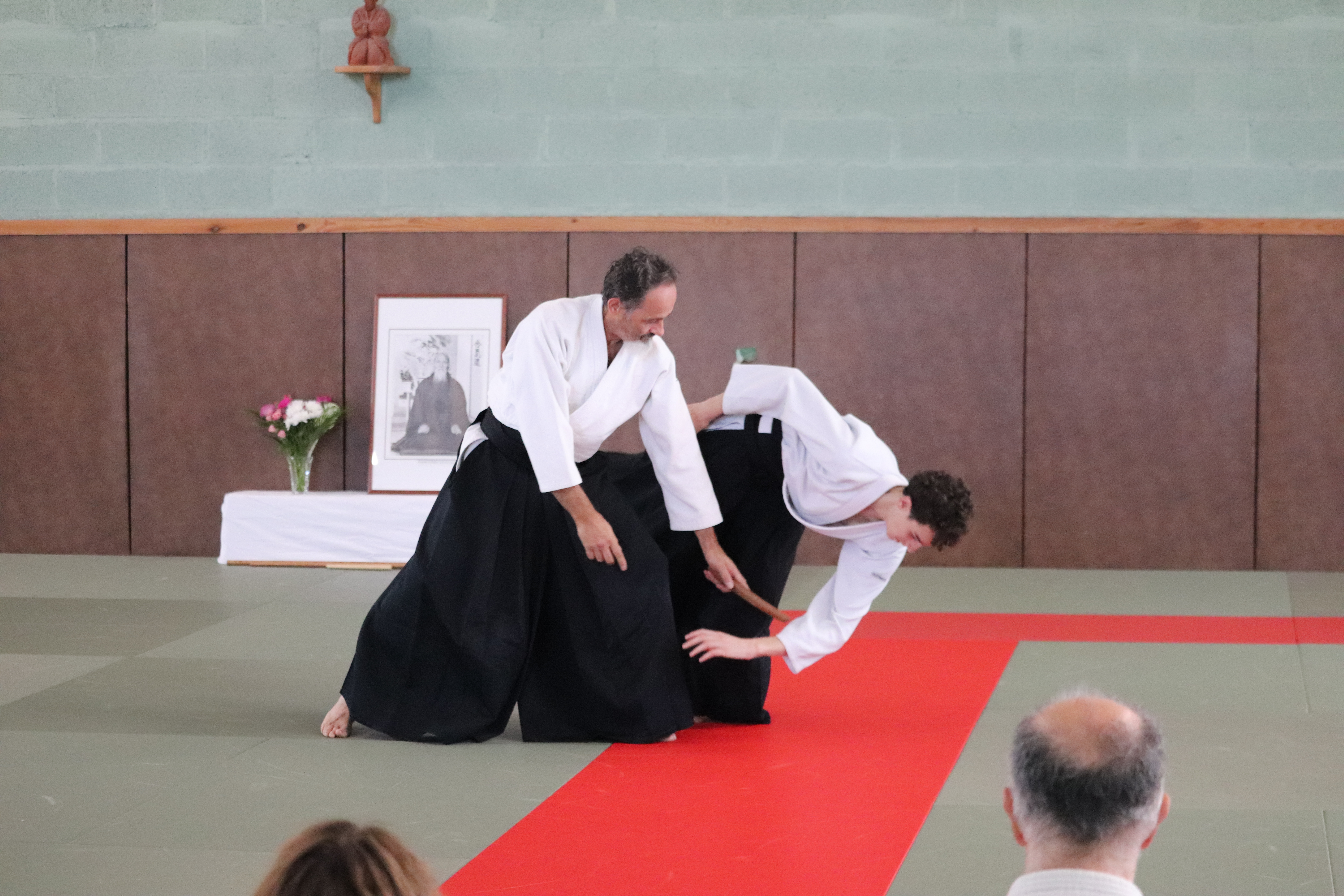 • Tori lève les bras, se décale et fait chuter Aïte en kokyu nage.
