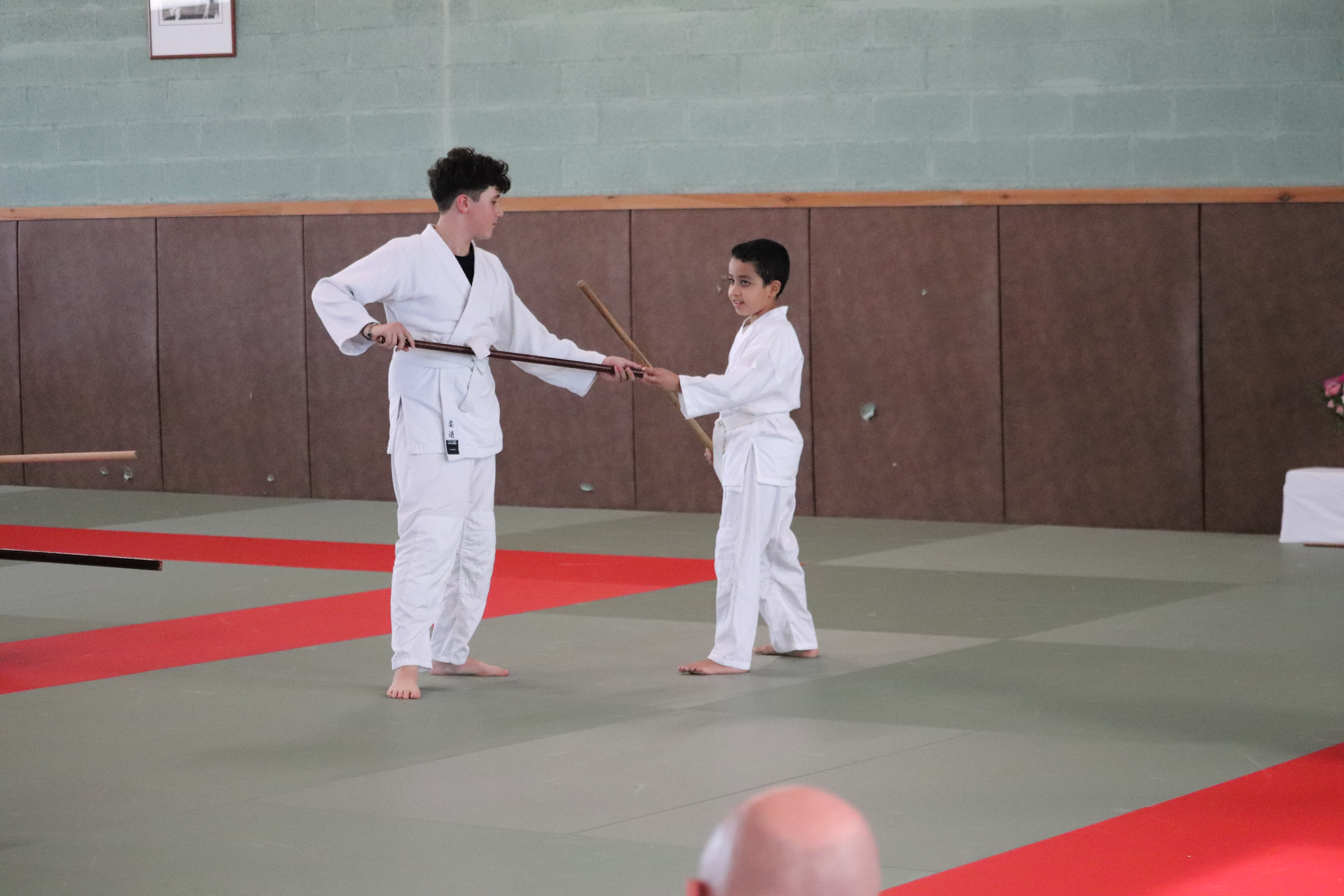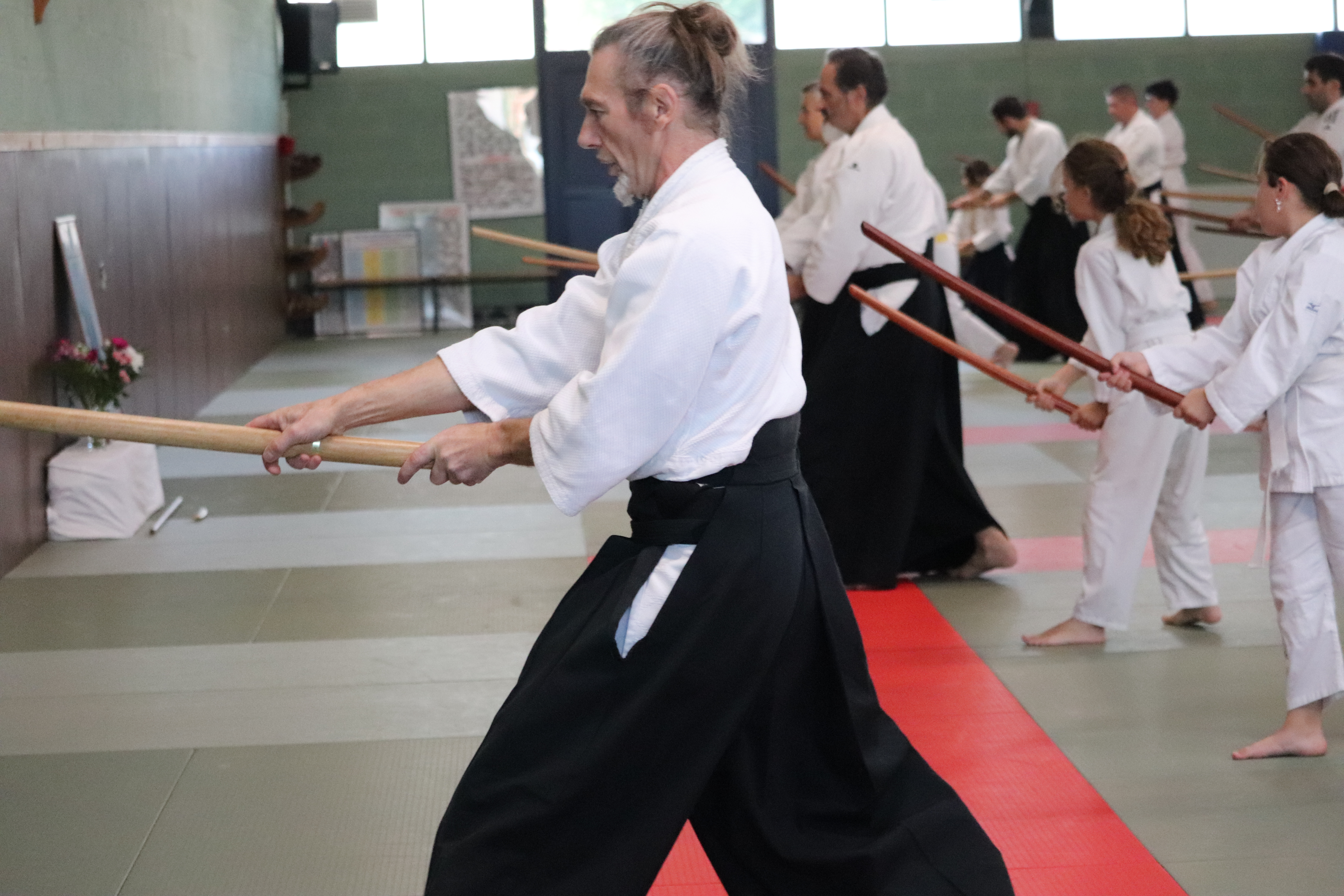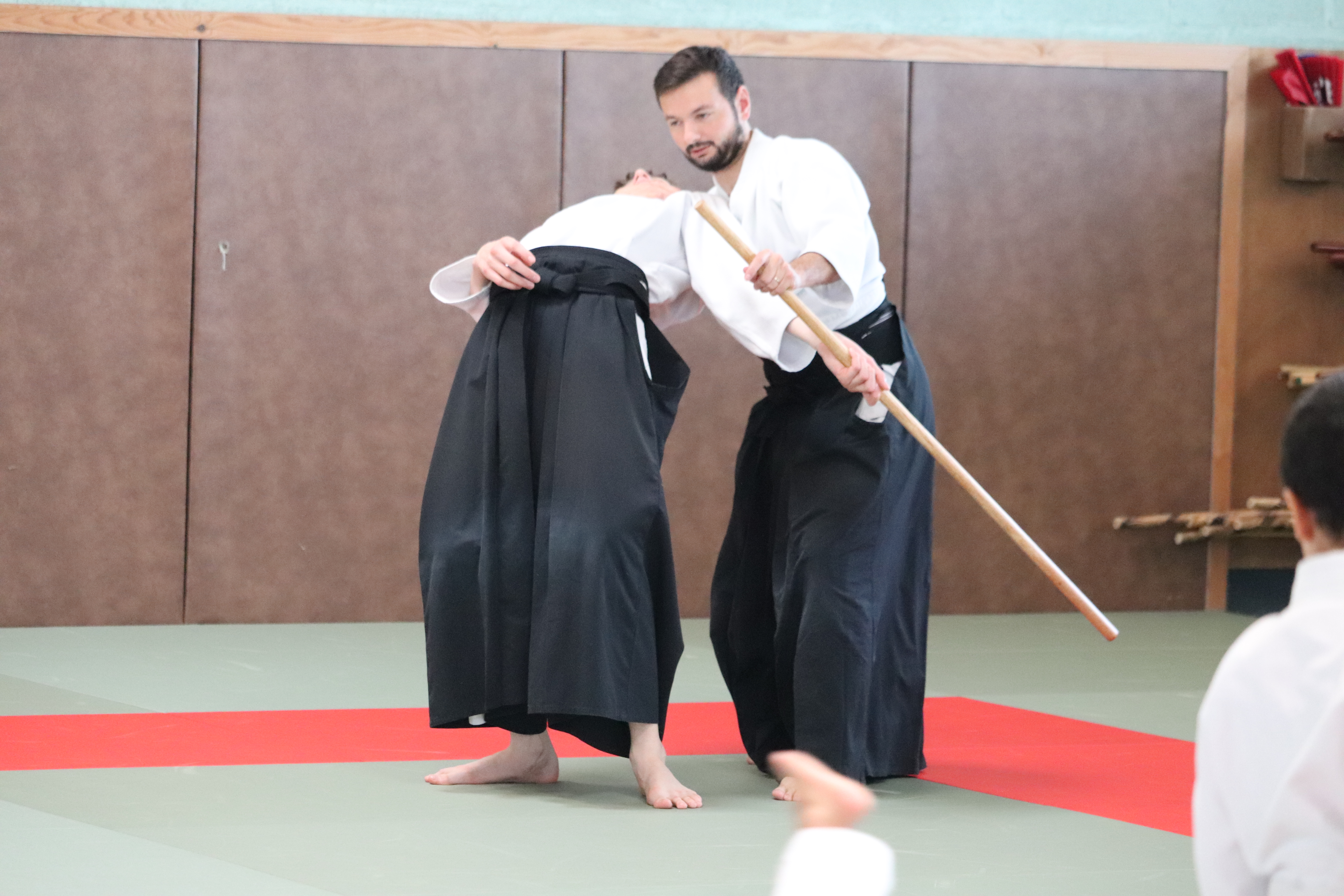 • Avant l’arrivée au bord du tatamis, enrouler le bokken, horizontalement et attaque tsuki.