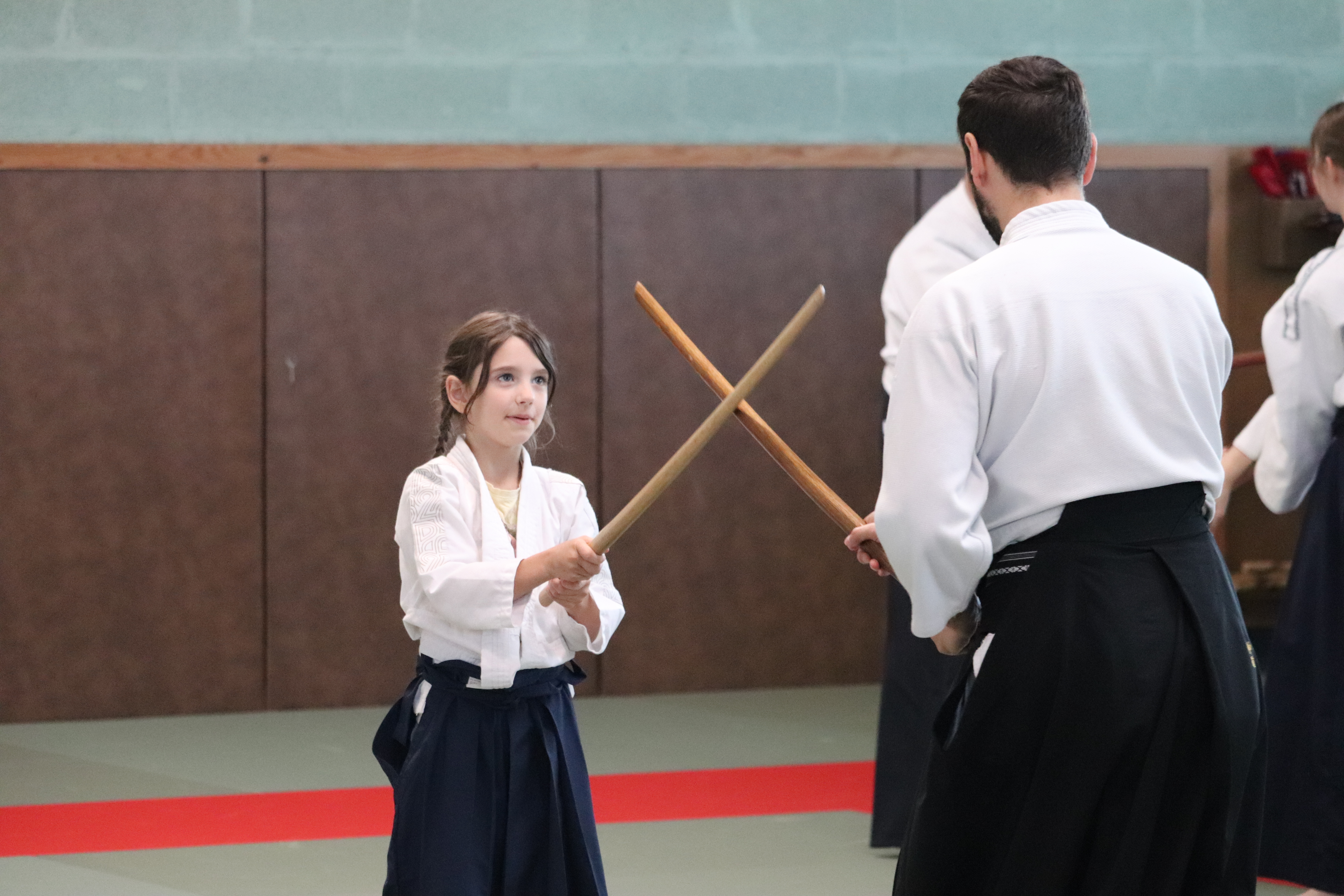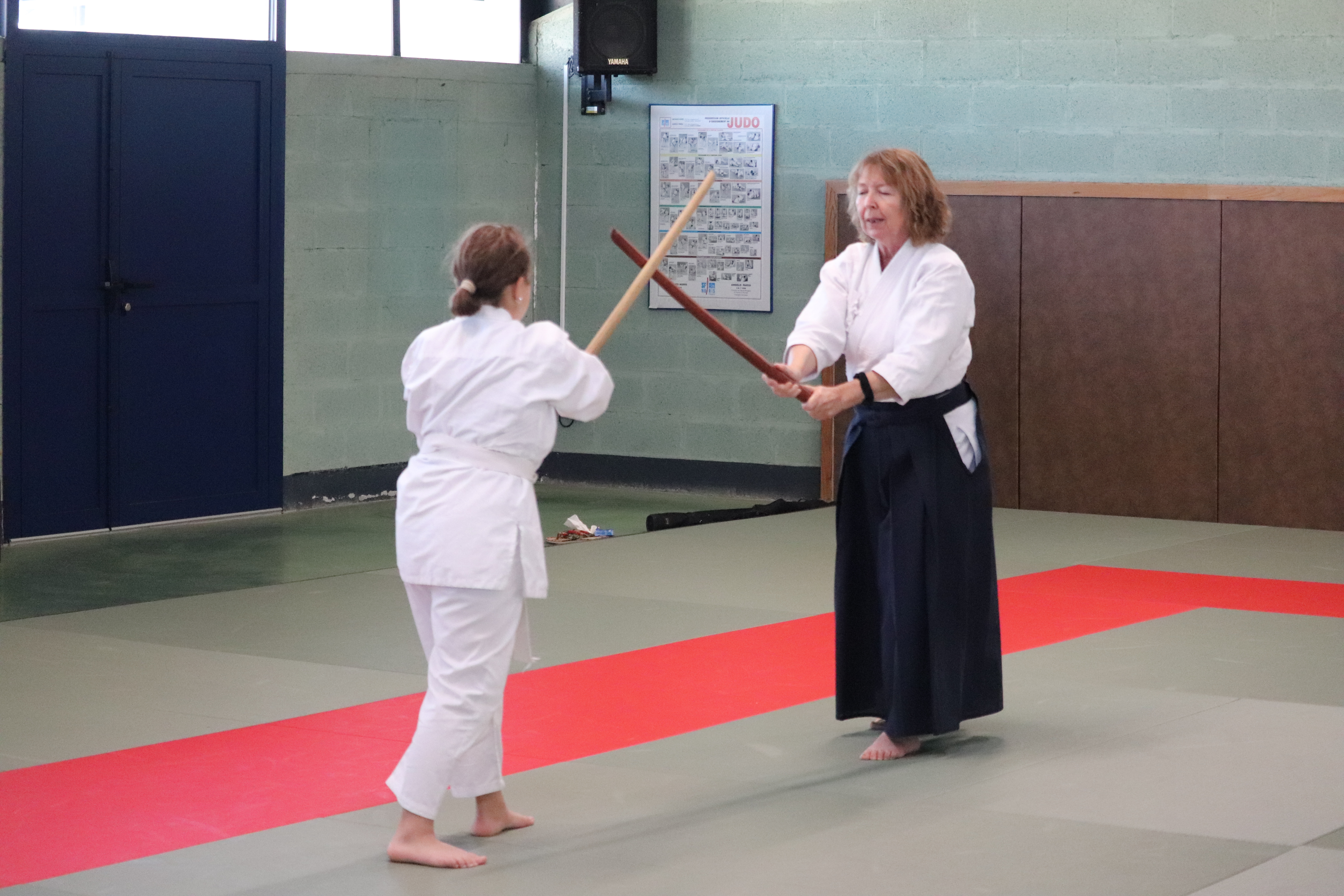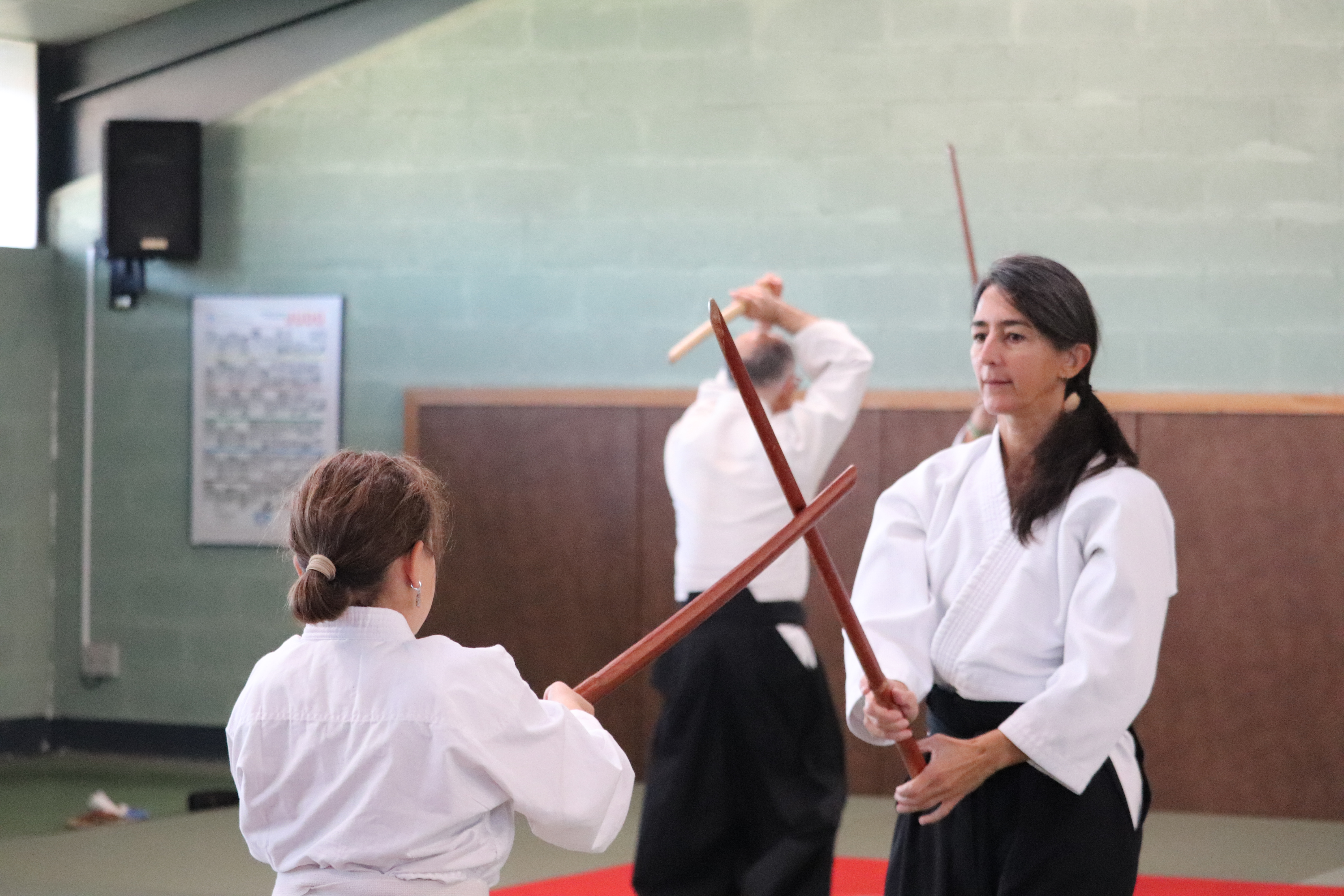 ◦ Bien s’arrêter entre chaque coupe, contrôle du bokken pour que la pointe netombe pas et croise celle du partenaire.