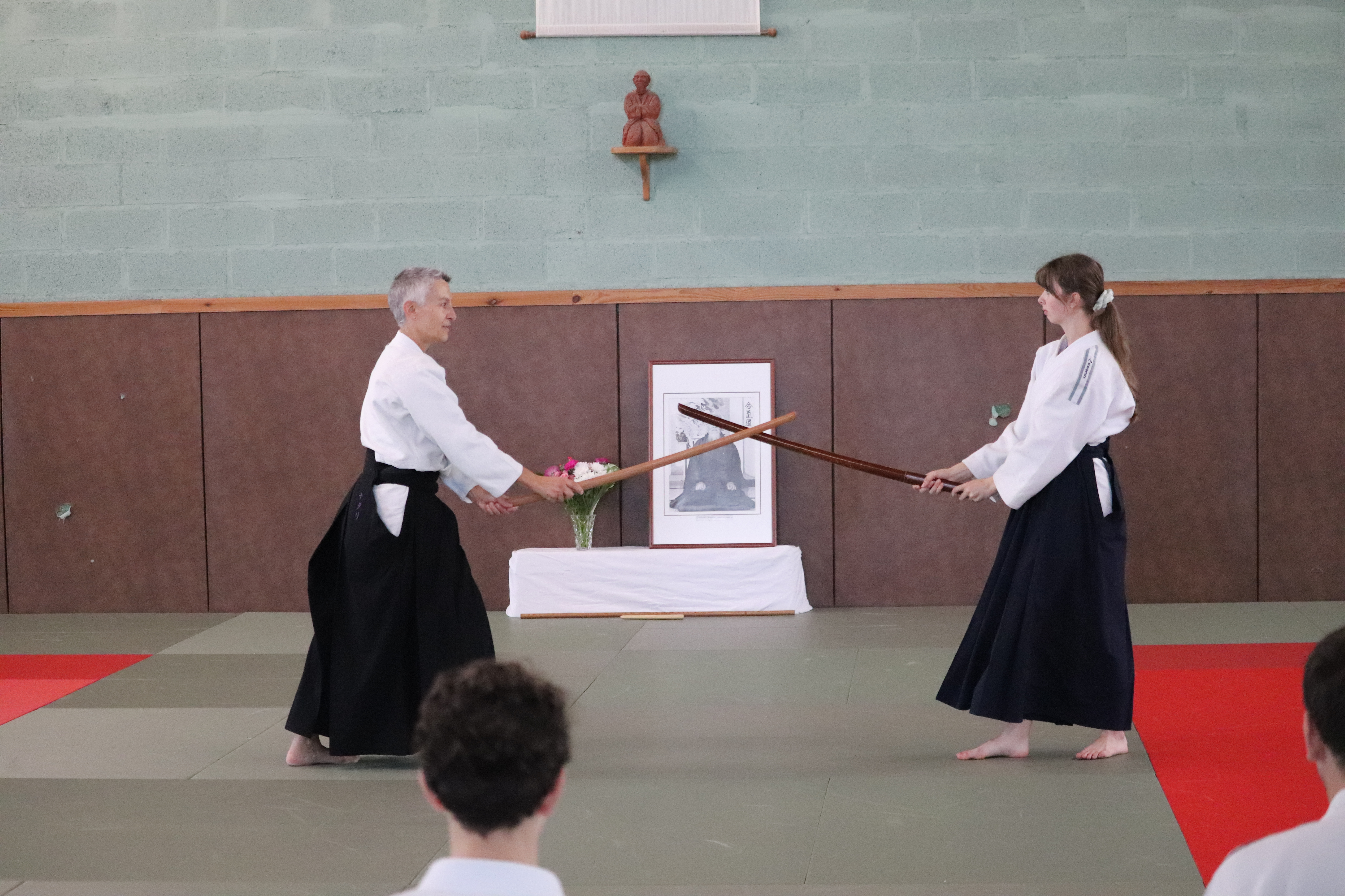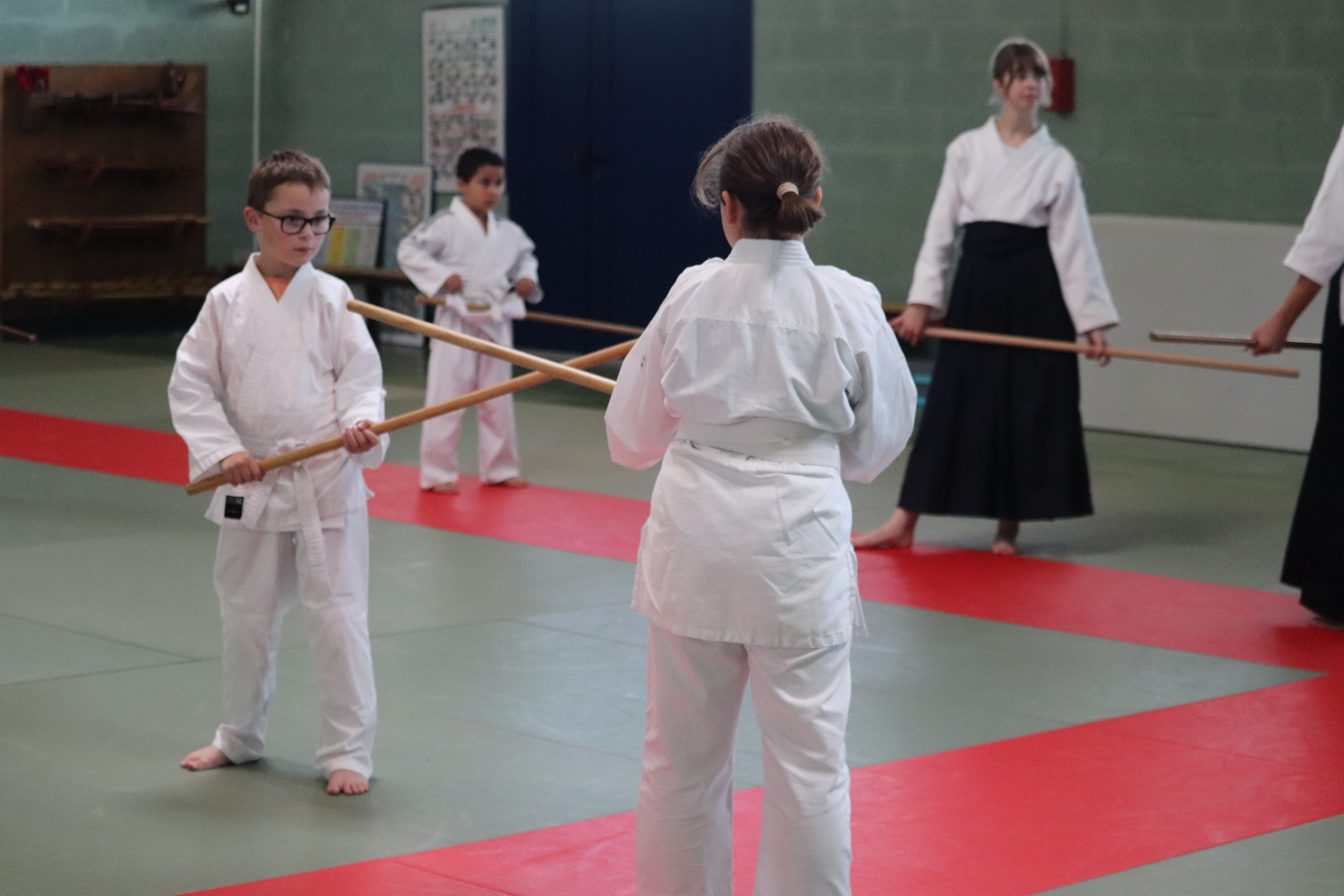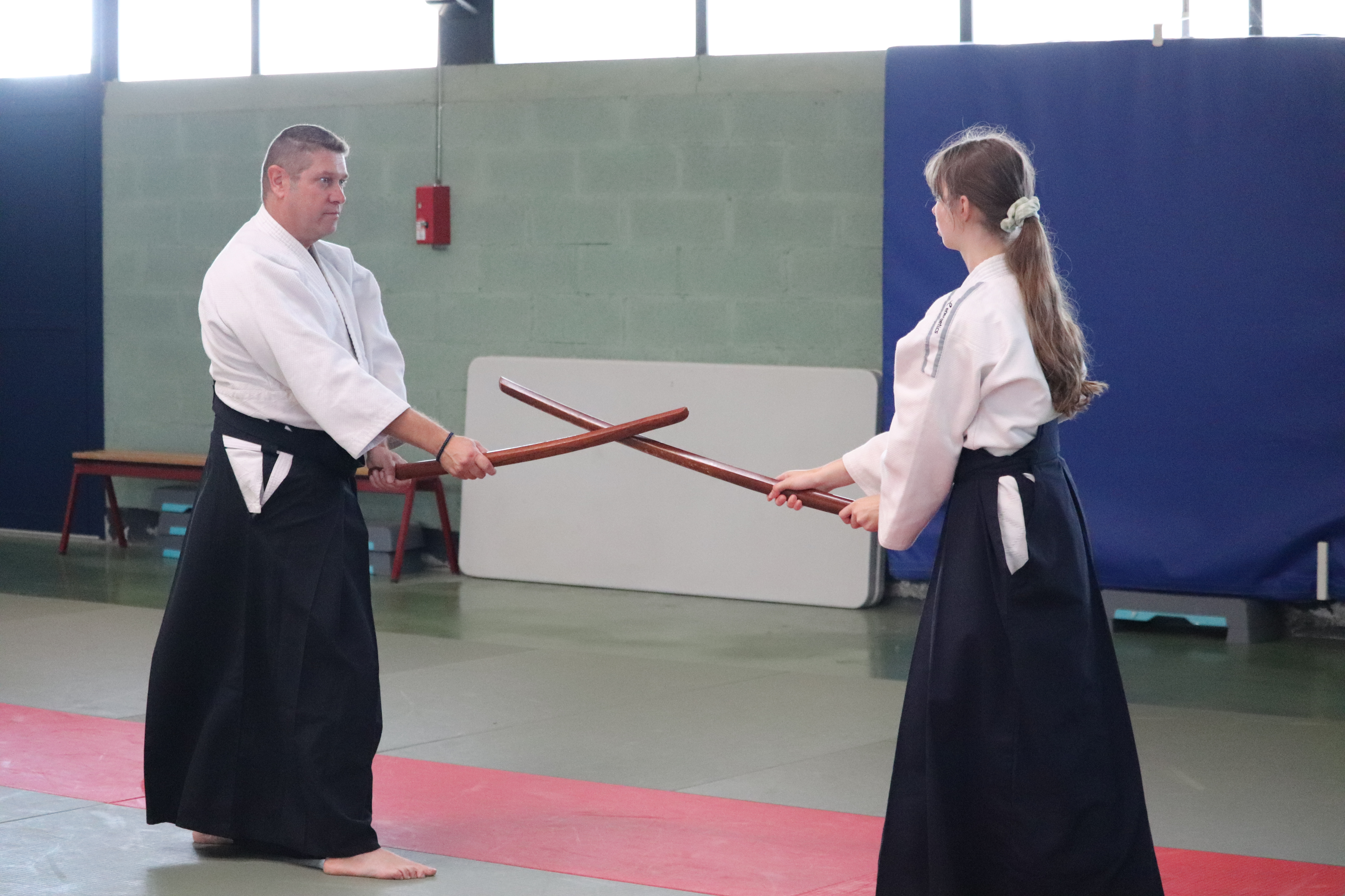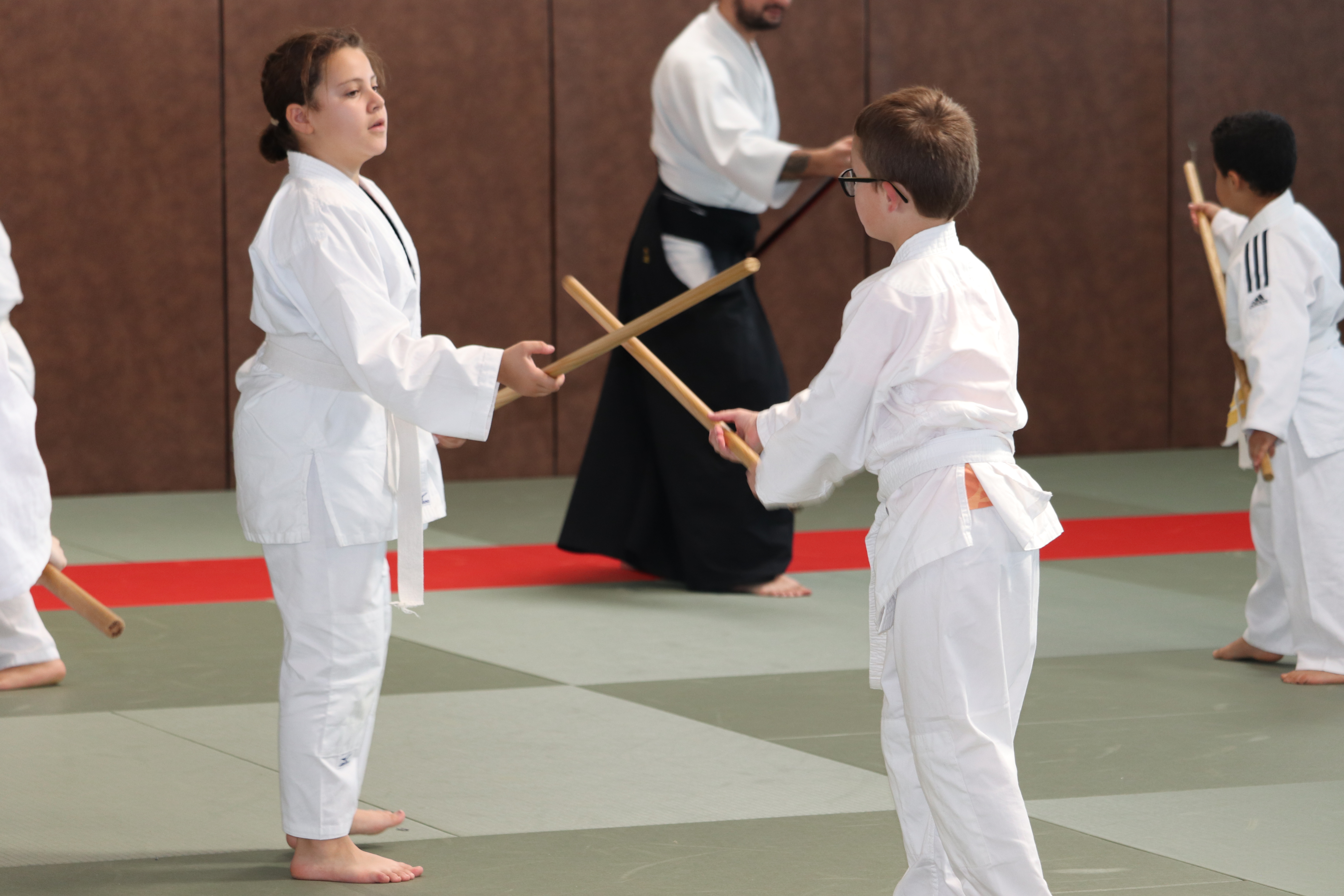 ◦ Bien s’arrêter entre chaque coupe, contrôle du bokken pour que la pointe netombe pas et croise celle du partenaire.