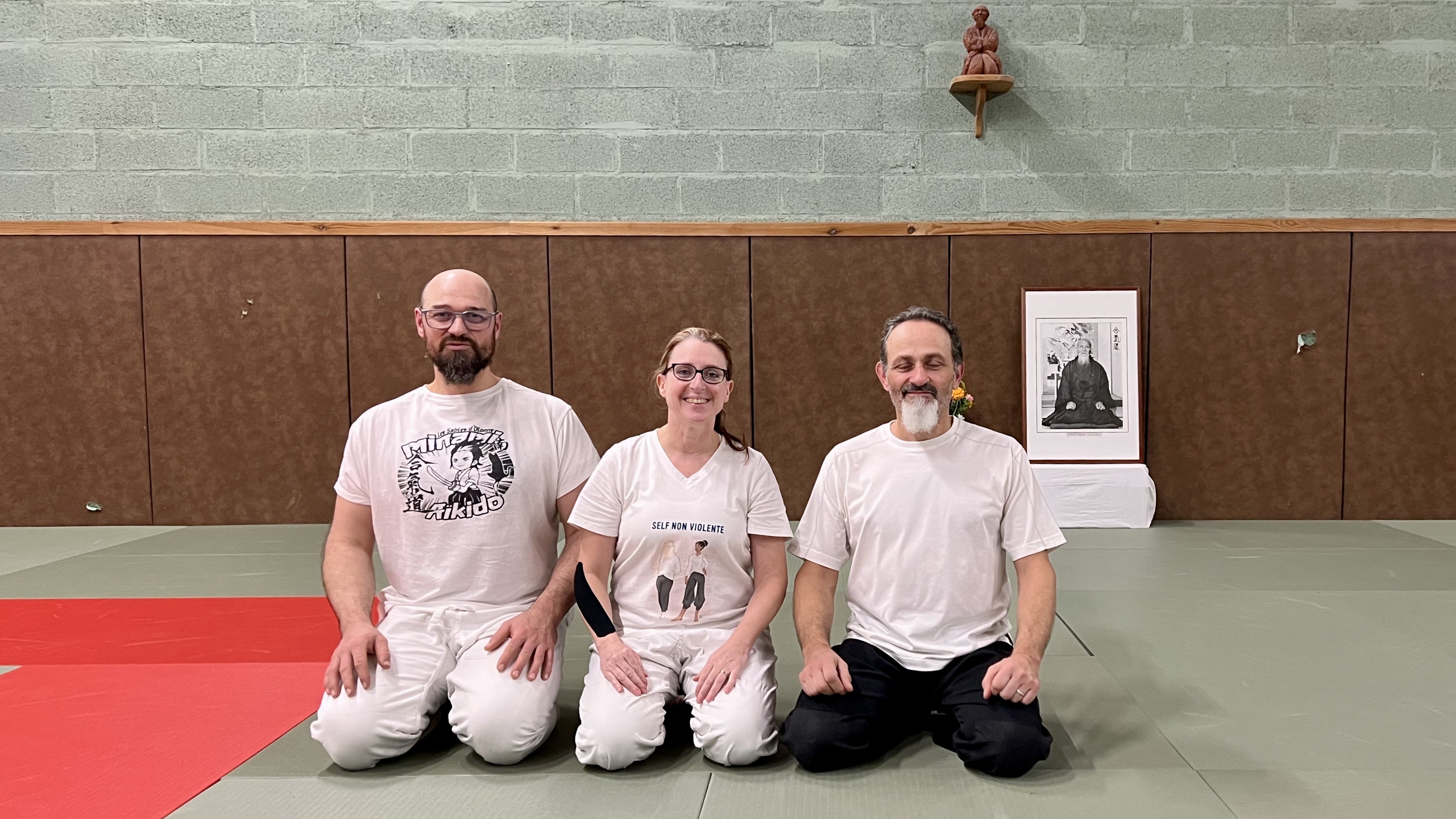 La partie self défense est donc logiquement déjà inclue dans la discipline et ce fut le but de ce week end de stage, samedi dimanche avec l’évolution technique qui s’est faite progressivement de l’Aïki-Taïso vers l’Aïkido self défense jusqu’à l’Aïkido qui a complété le stage.