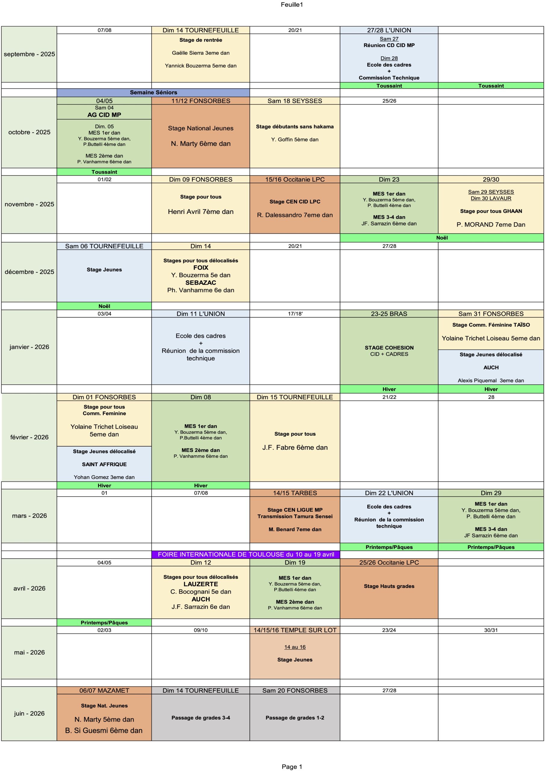 Calendrier CID Midi-Pyrénées AIkido FFAB